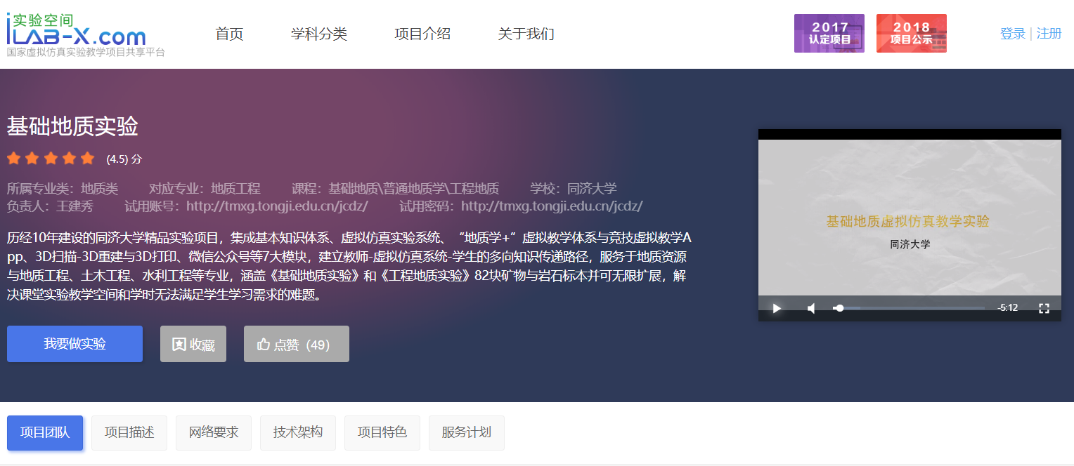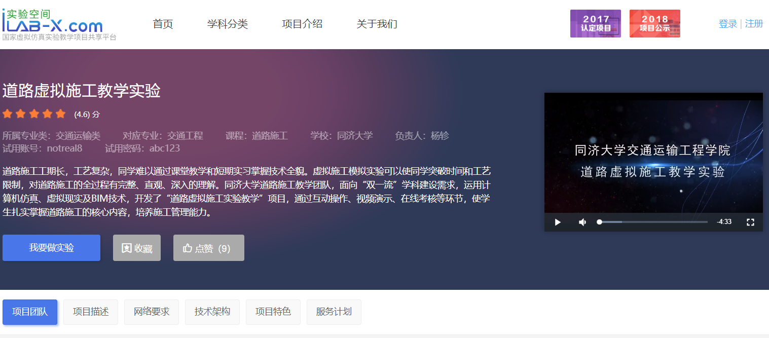 同济大学2018年度国家虚拟仿真实验教学申报项目正在进行公示