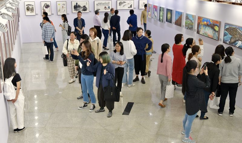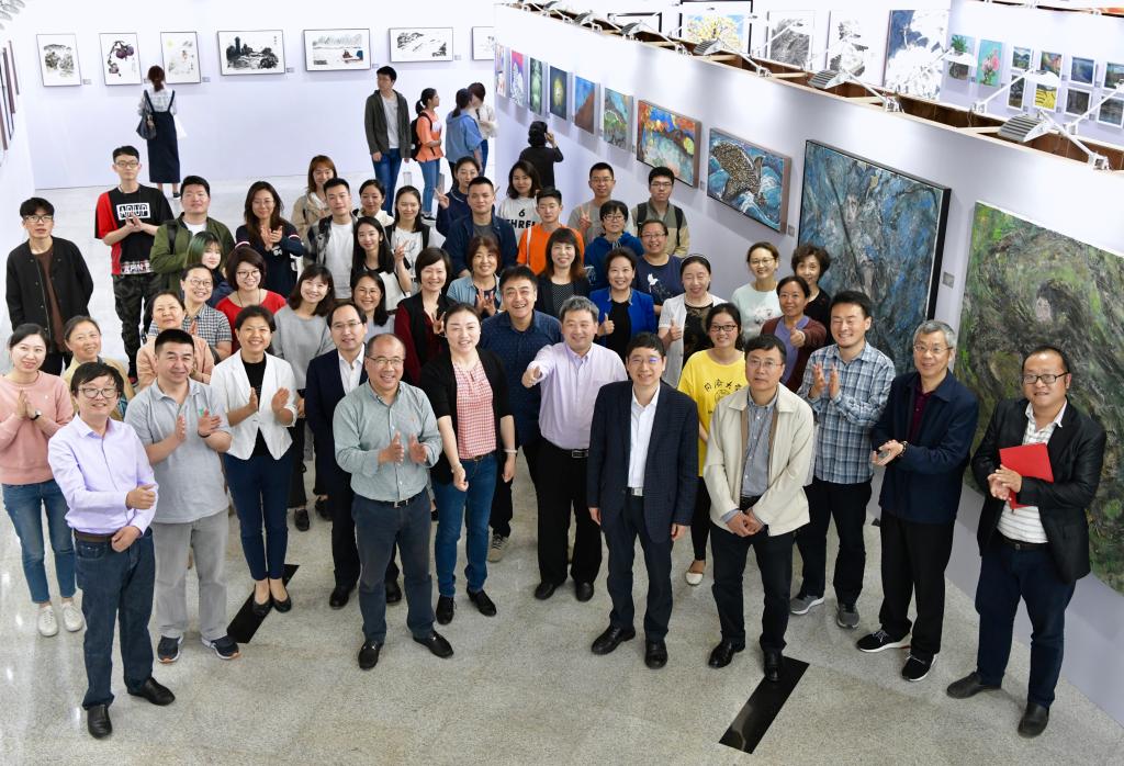 本次展出的120多幅作品来自嘉定校区参与绘画艺术教育实践活动的师生,有中国传统绘画元素的研究,有在大自然中的写生,还有综合材料绘画创作作品。这些作品充盈着中国传统“气韵”思想,源于“气”,呈现“韵”。压抑中的改变与反抗,新生时突破与向上,绽放后的灿烂与平和,都尽藏无限生机。开幕式上,教师代表获赠《青与蓝·二》画册,“中国画教师研修班”学员代表曹静与艺术指导教师于澎教授发言,分享绘画研修中教学相长的感悟、喜悦与收获。