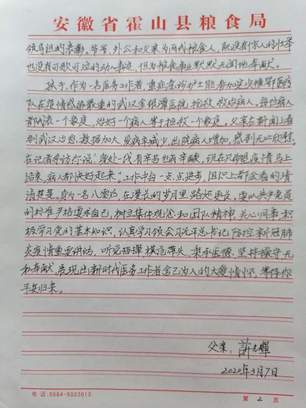 得知许诗琨在抗疫一线火线入党,他的父亲第一时间写来家书——“你今后的人生路还很长……”