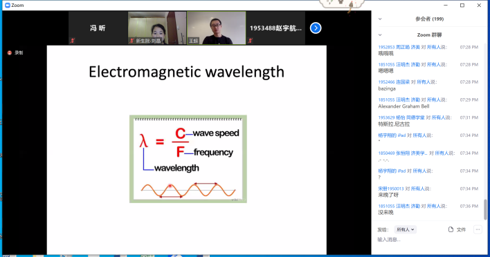 此活动邀请学院一批优秀的青年教师当主播,围绕“纳米技术”“历史建筑”“游戏设计”“色彩美学”“自动驾驶”“创意与创新”“汉字与日本文化”“相对论时空观”“人工智能时代”“抗疫与抗震”“人文学”“电影音响技术”等话题,为同学们带来精彩的通识讲座,让同学们收获轻松愉快的时光,感受到来自学校的关怀和牵挂。讲座内容推出后,不少主讲教师被彼此分享的题目所吸引,相互“捧场”,就分享主题作深入交流。在学校正式复学前,此活动还将持续不断地推出。