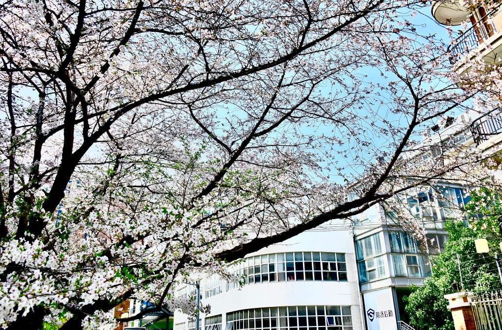 明媚春光中,樱花迎风绽放,云蒸霞蔚,美不胜收。百般红紫斗芳菲,满园春色惹人醉。想家的同济人可藉此“云”赏久违校园里的这般胜景,重温往昔美好的校园时光,以聊解思校之情,不负大好春光。