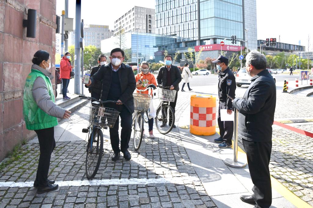 出示手机上的“随申码·健康”绿码,经我校研发的疫情防控智能识别系统自动测温、智能识别,刷校园一卡通进校,在行政楼内作登记……自4月1日起,学校机关部处全体教职工(除身在湖北的部分教职工外)返校返岗,恢复上下班制度。