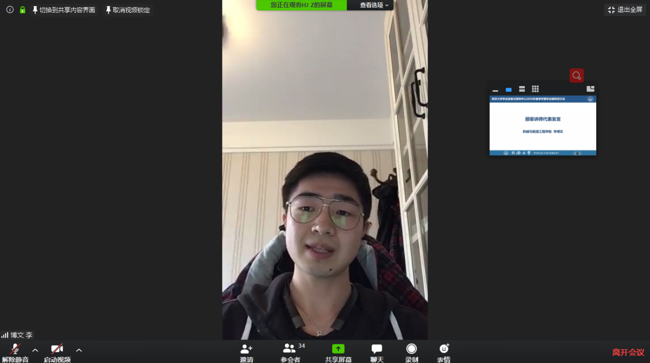 机械与能源工程学院2018级本科生李博文作为朋辈导师代表分享了自己参与学业帮扶的收获,他希望学校今后能建设更多学业指导网络平台,让更多“小导师”们和学生受益。电子信息与工程学院辅导员刘谦、新生院辅导员丁大增、数学科学学院辅导员彭靖、机械与能源工程学院辅导员王佳琪和外国语学院辅导员刘佳煊分别以《学业辅导工作交流 ——“扶稻”计划》《夯实增长才干之根,扎实推进学业建设特色工程》《看见需求,整合资源,打造学业发展共同体》《在线学习环境下学业辅导员工作实践与思考》和《击痛点、挖难点、追热点——依托学业指导提升同济学子外语能力和全球视野》为题分享了对于学业指导工作的经验和思考。
