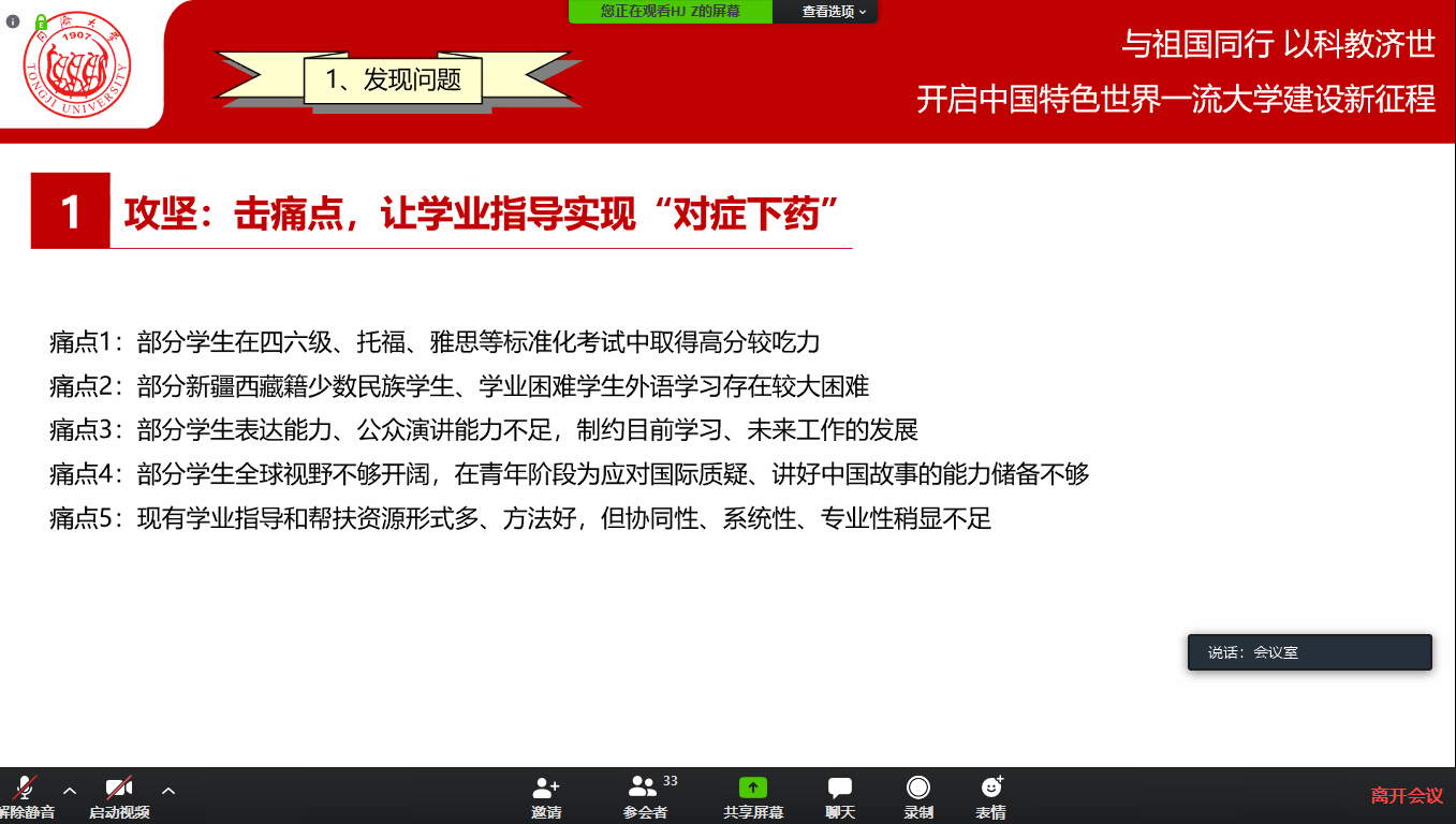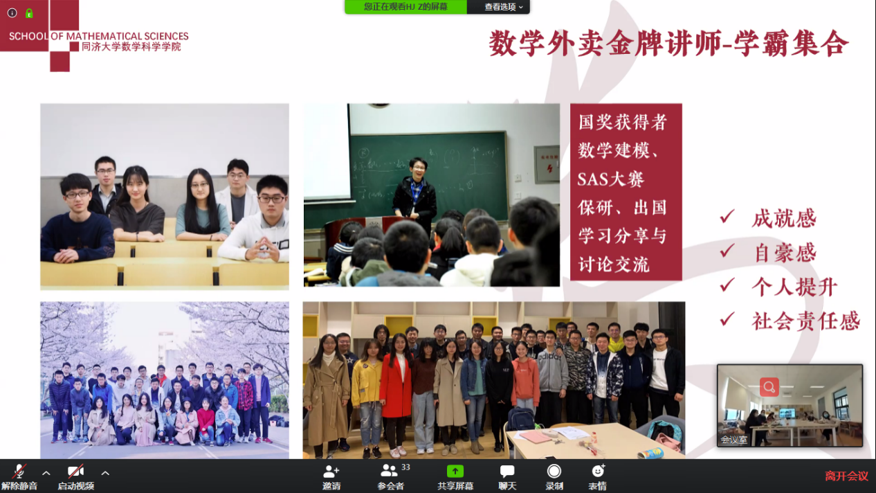 4月1日下午,同济大学学业发展与指导中心举行“学业指导与帮扶”主题辅导员沙龙,本次沙龙分为主会场及视频直播分会场。校长助理、党委学生工作部、研究生工作部部长刘润参加主会场沙龙。三十余名学院学业辅导员在线参加了沙龙分享。