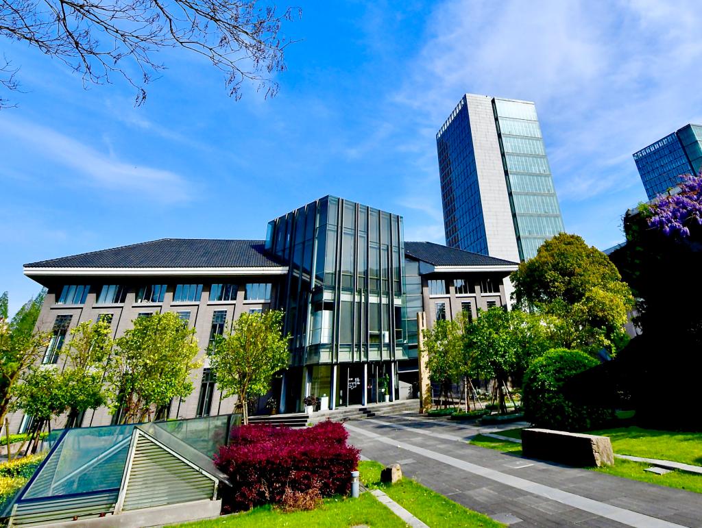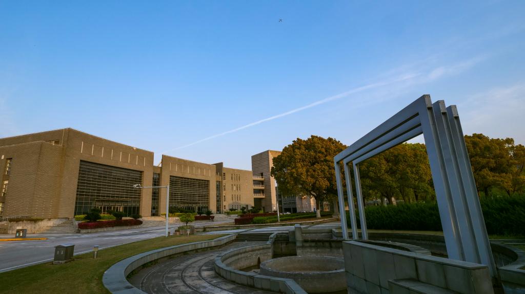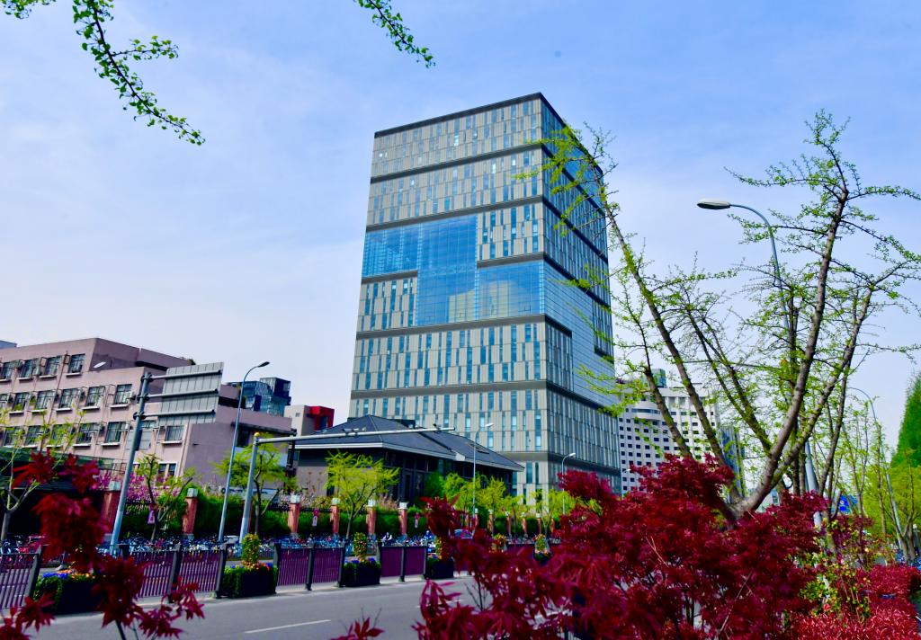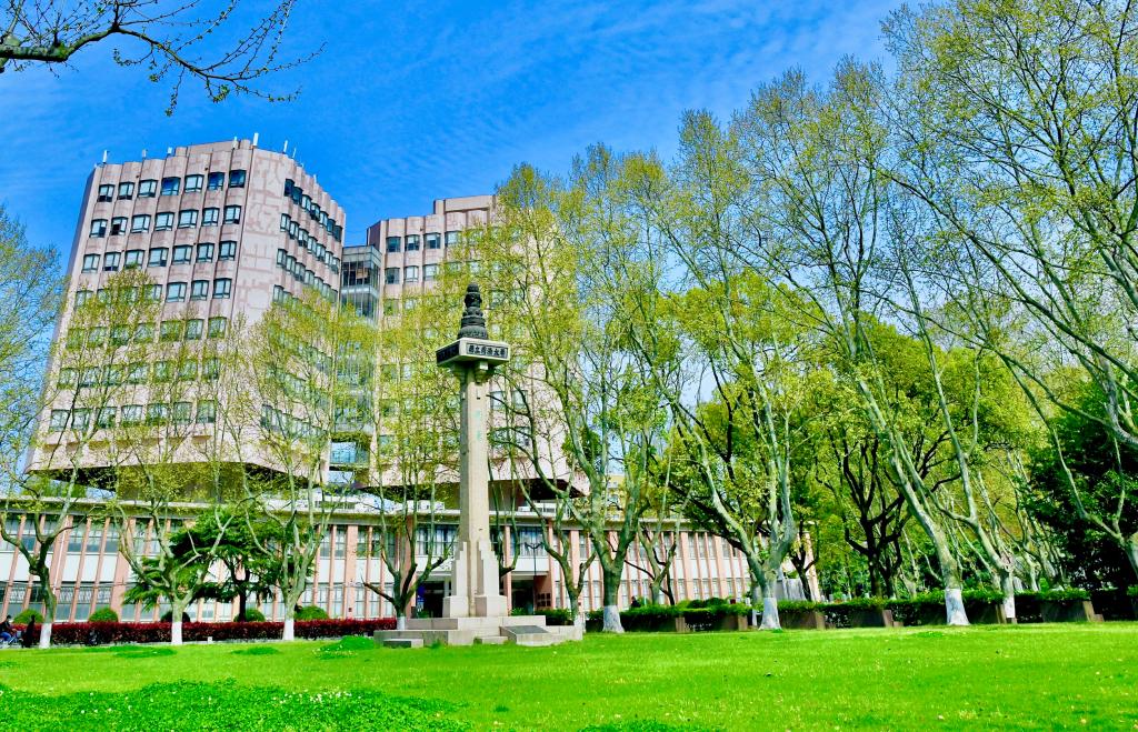 四月的同济园里依然静悄悄,一栋栋各式建筑沐浴在明媚的春光中,有着别样的沉静之美。