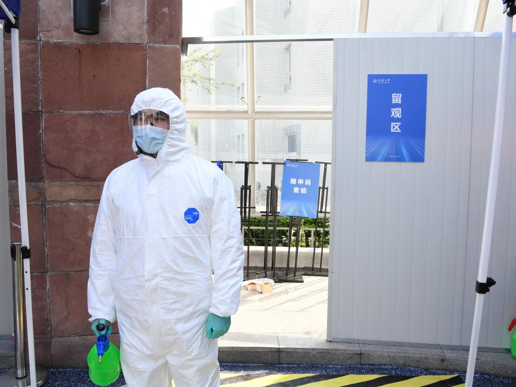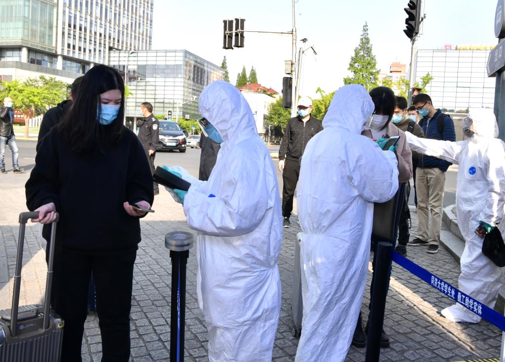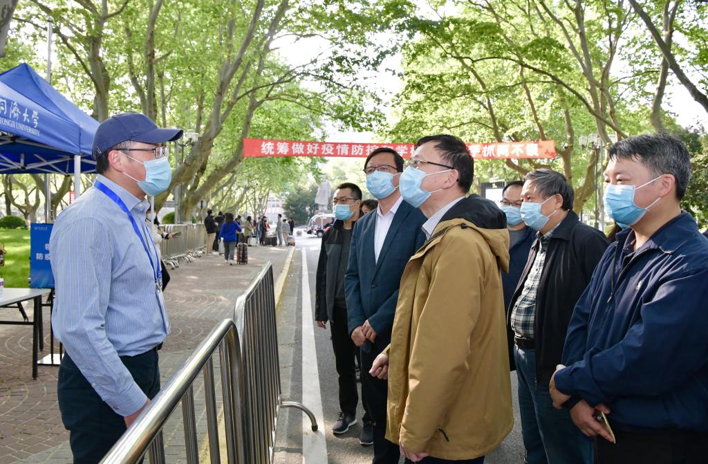 4月26日下午,同济大学举行学生返校应急处置模拟演练,校党委书记方守恩、校长陈杰等校领导一行先后来到四平路校区大门、图书馆、教学南楼、学苑食堂、西南二楼、医学院实验室,模拟体验学生入校、入住宿舍、上图书馆、食堂就餐、进实验室等返校学习生活的各环节,检查这些环节中各项防控措施的具体落实情况,以及早发现问题,进一步细化、完善工作方案,统筹做好校园常态化疫情防控和学生返校复学工作。