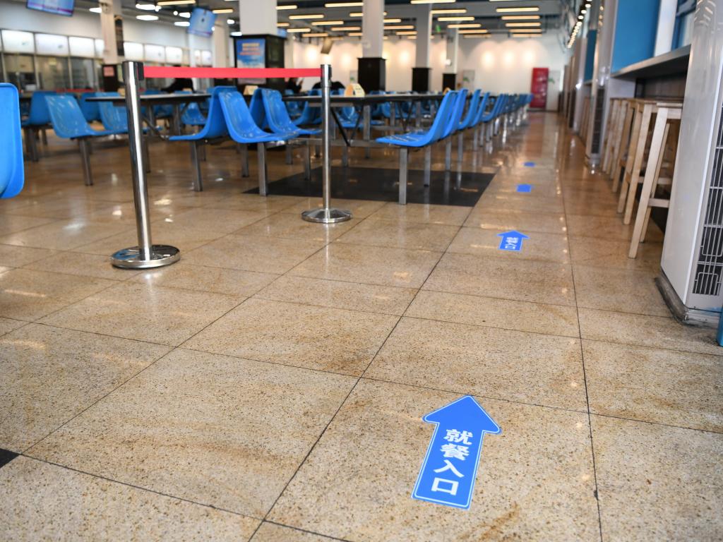 在学苑饮食广场,体温检测、排队一米隔离线、单向进出、分散就座等防控措施仍然没有放松,食堂就餐环境整洁、安全、有序。随着学生返校,学校将逐步开放更多食堂。校领导要求食堂继续严格落实落细各项防控措施不松懈,学生进入食堂就餐时要接受体温检测,佩戴好口罩;用餐前要洗手;排队过程中佩戴好口罩,用餐时方可脱下口罩;用餐时分散就座;合理安排用餐时间,错峰用餐;倡议师生打包带走、单独用餐;有发热、咳嗽等症状的同学,不得进入食堂就餐。