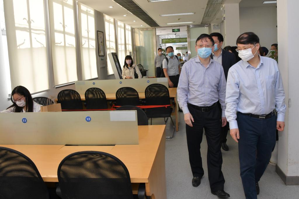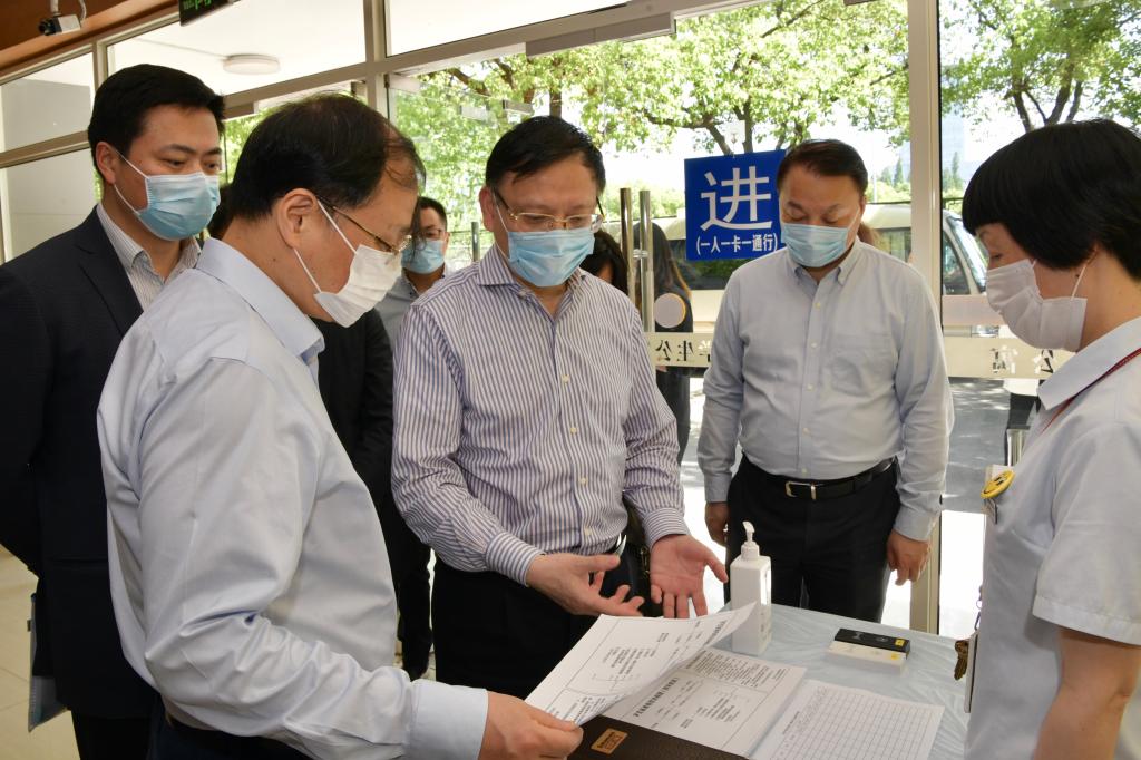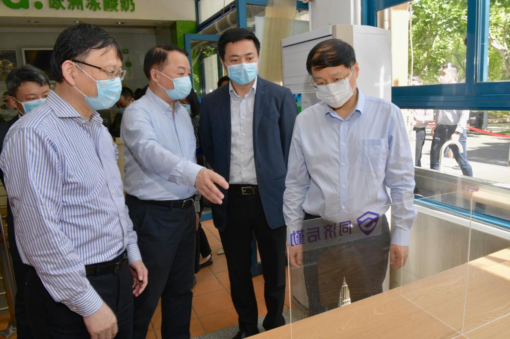 魏士强一行先后来到我校四平路校区大门入口、图书馆、学苑食堂、信息化办公室、西南二楼学生社区、干训楼临时隔离点等处,了解这些重点场所各项疫情防控措施落实情况,以及学校线上教学开展情况。