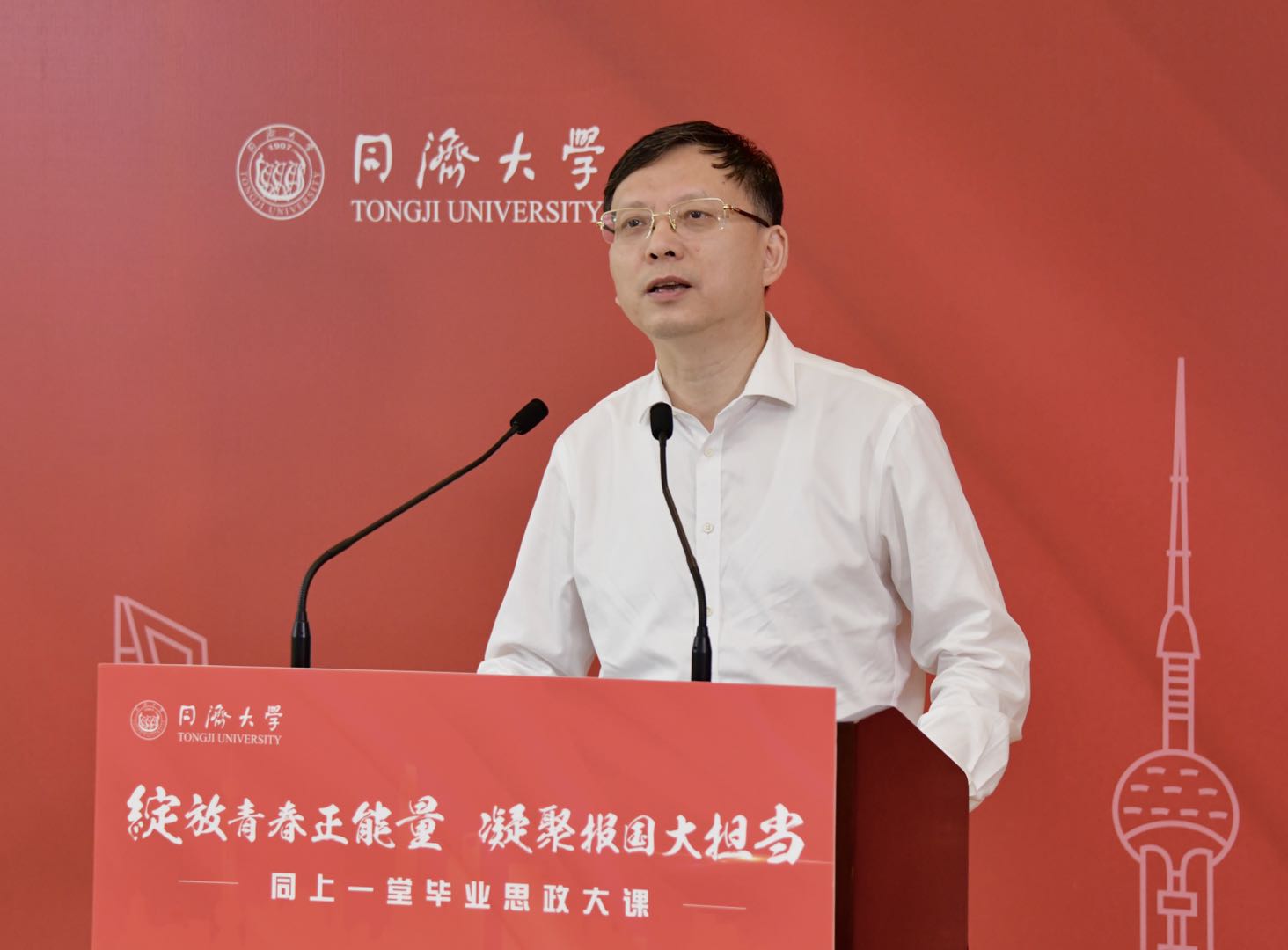 最后,方守恩对即将毕业离校的同济学子提出了几点希望:一是胸怀理想,在为党和人民建功立业中实现远大抱负,在奉献祖国和社会中升华人生境界;二是追求卓越,练就服务人民的真本领、推动发展的硬功夫,做社会主义建设者和接班人;三是脚踏实地,一步一个脚印,用实际行动书写未来的精彩华章。