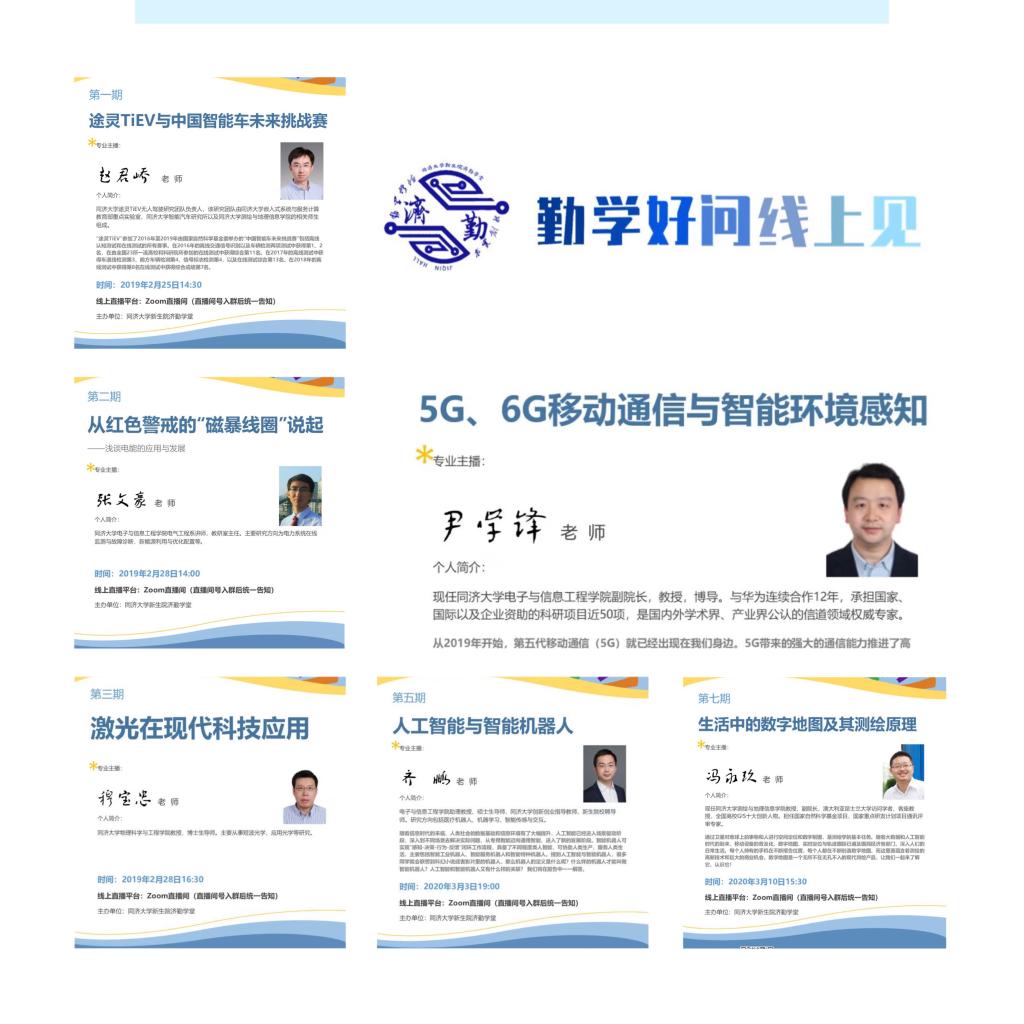 疫情期间,停课不停学,结合学生需求,新生院策划“宅家学习资源推荐”专栏,打造线上教育金牌活动,为学子营造积极向上的居家学习氛围。新生院联合各专业学院,推出“云享微课堂”“云听大咖说”等“线上学习金课”。同舟学堂开展“班级读书会”,为同学们开展数学、英语等多个学科的线上教学、答疑;济勤学堂结合专业兴趣启蒙,联动专业学院开展9期“勤学好问线上见”系列活动,以线上赛代替线下学;济美学堂协同专业学院,精心打造“济美云课堂|专业篇”“济美云课堂|美育篇”等系列推送;济世学堂开设云端读书会,组织学生线上共读。