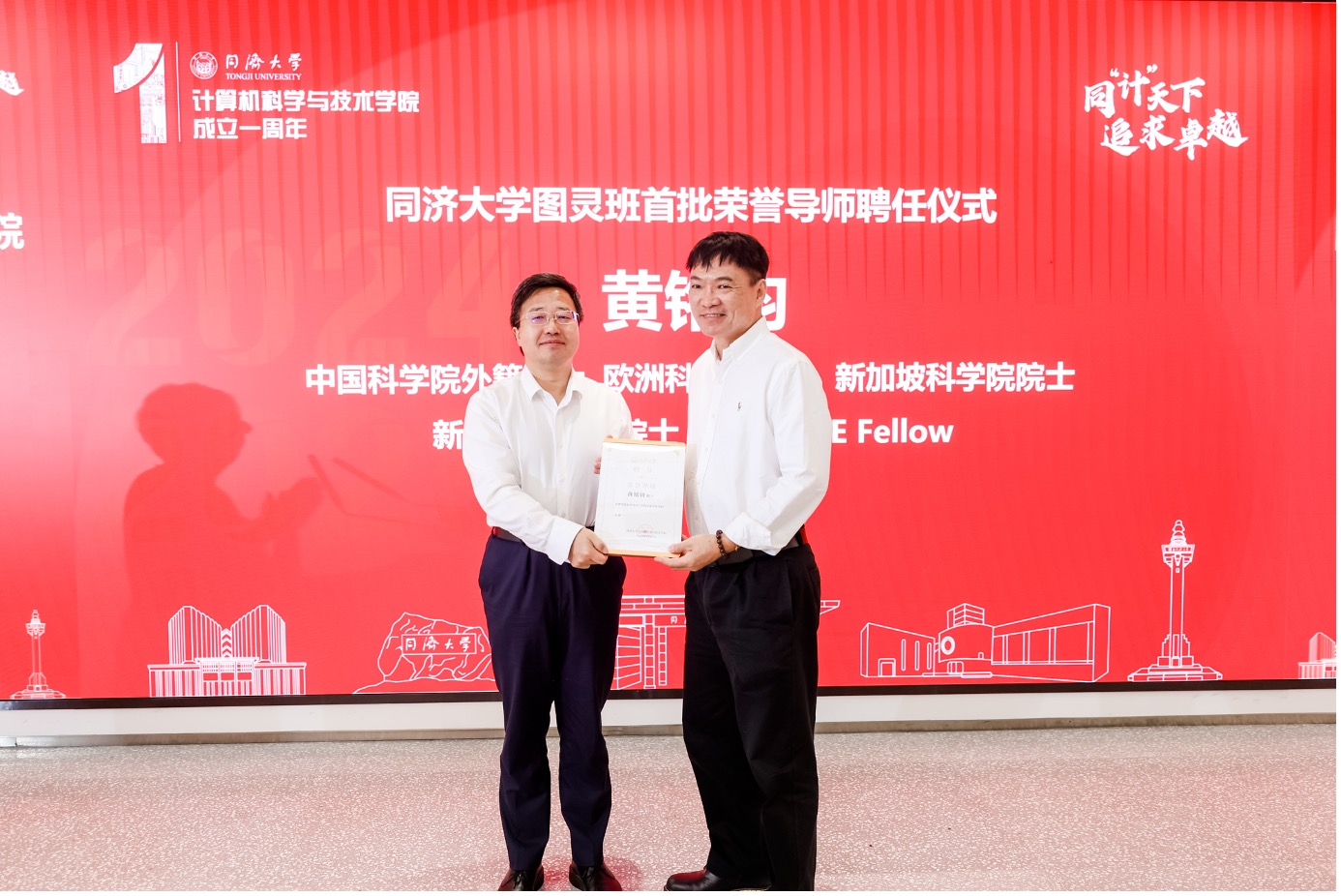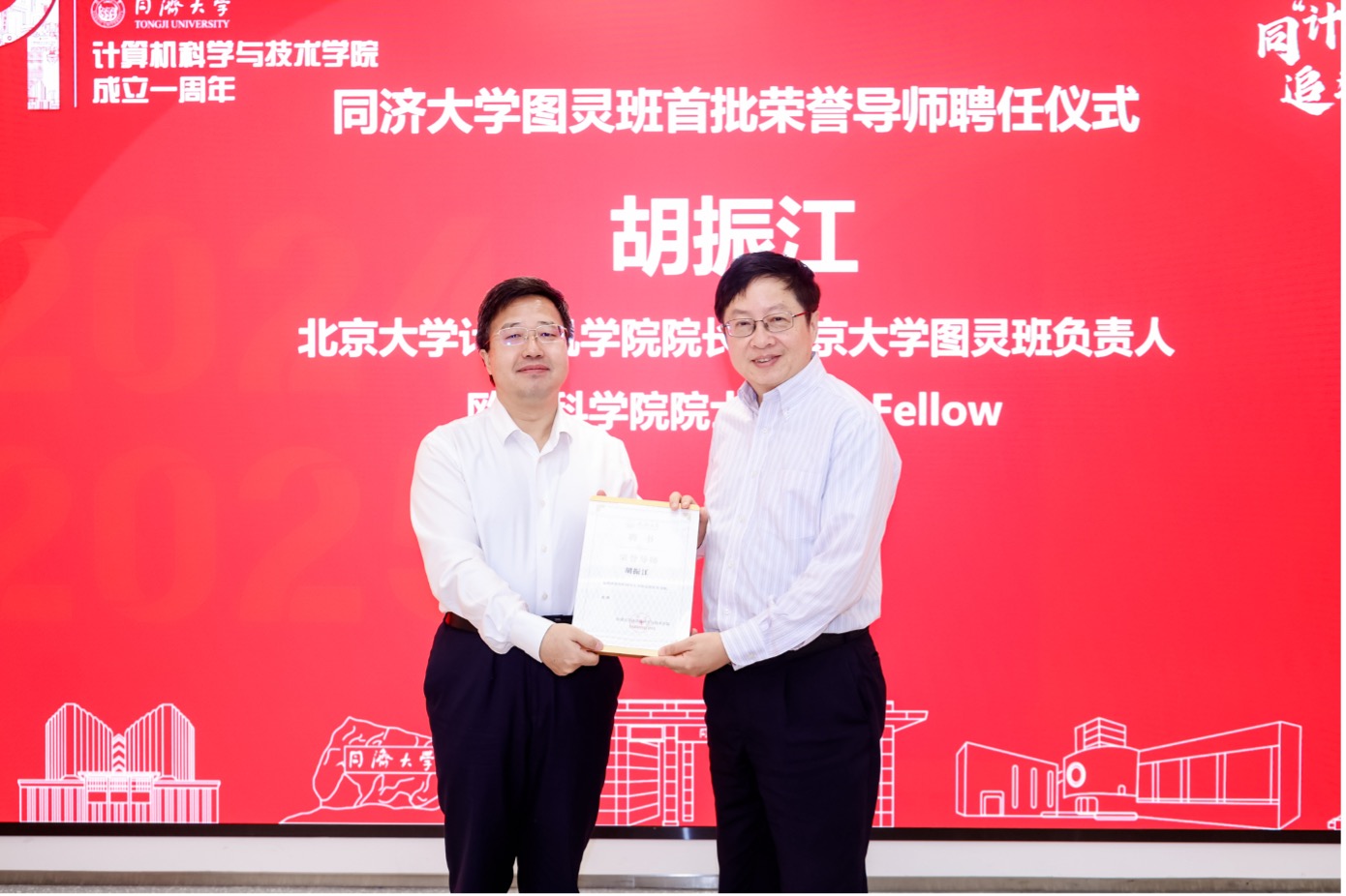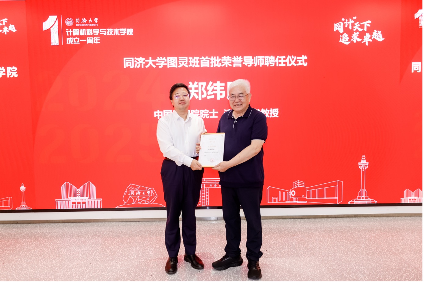 计算机科学与技术学院升级计算机基础学科拔尖基地,正式成立同济大学“图灵班”,构建起具有同济特色的“5个100%+双灵活”拔尖创新人才培养模式。为强化育人支撑,学院首批聘请16位知名专家担任同济大学“图灵班”荣誉导师,包括两院院士4位、ACM/IEEE Fellow 8位。赵宪忠为到会导师颁发同济大学“图灵班”荣誉导师聘书。