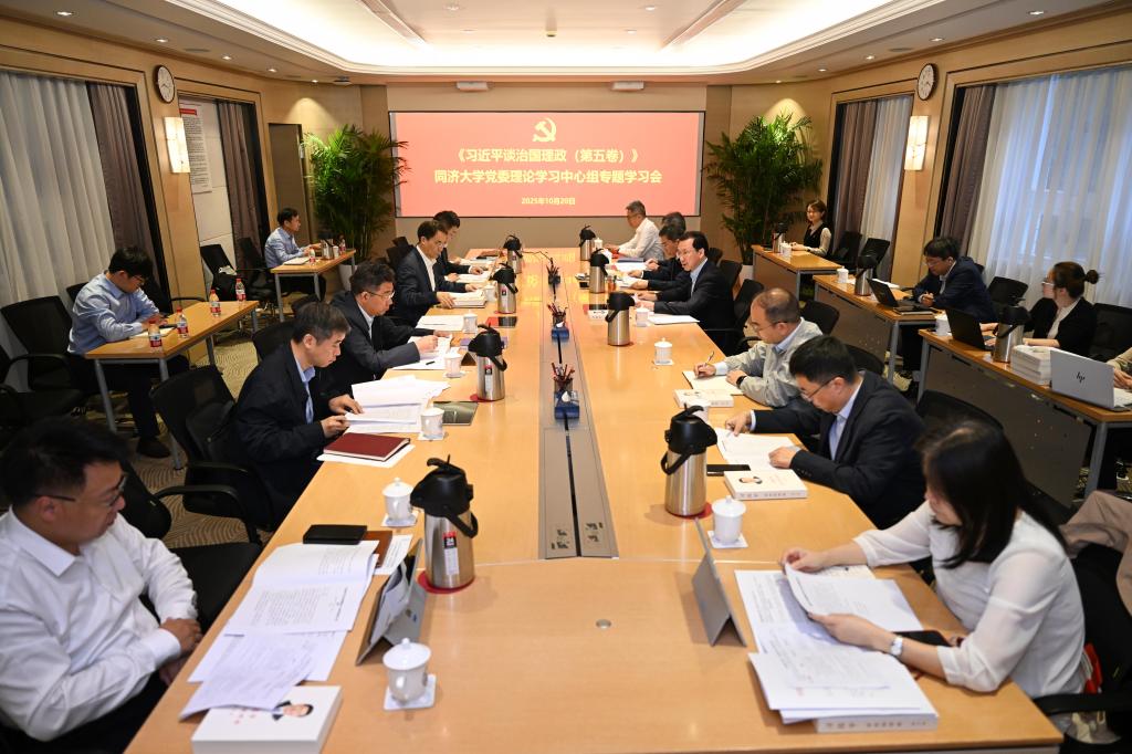 1020日,同济大学党委理论学习中心组举行专题学习会,集体学习《习近平谈治国理政》第五卷,坚持不懈用习近平新时代中国特色社会主义思想武装头脑、指导实践、推动工作。校党委书记郑庆华主持学习会,校领导班子成员参加学习。