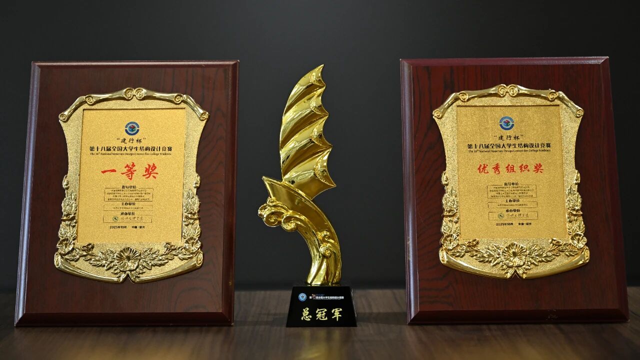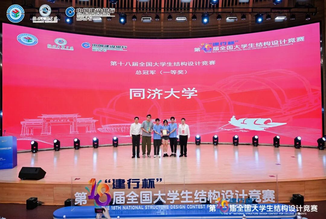 在近日落幕的第十八届全国大学生结构设计竞赛总决赛上,同济大学学生代表队荣获全国总冠军,同济大学获颁优秀组织奖。