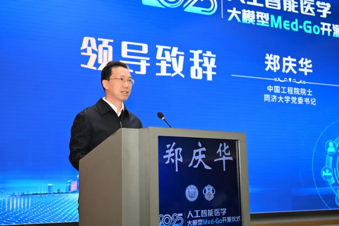 “今天开源的Med-Go大模型,是作为同济大学今年围绕‘工程智能’系统布局五大研究院之一的医学人工智能研究院成立以来的首个标志性成果。开源共享,是同济大学面向人民生命健康主动担当作为的又一生动实践。”郑庆华致辞表示,通过开源,希望汇聚全球智慧、促进技术迭代,避免重复建设和技术壁垒,加速人工智能技术在医疗健康领域的普惠应用,为我国在新一轮国际科技竞争中抢占智能医学制高点贡献同济力量。