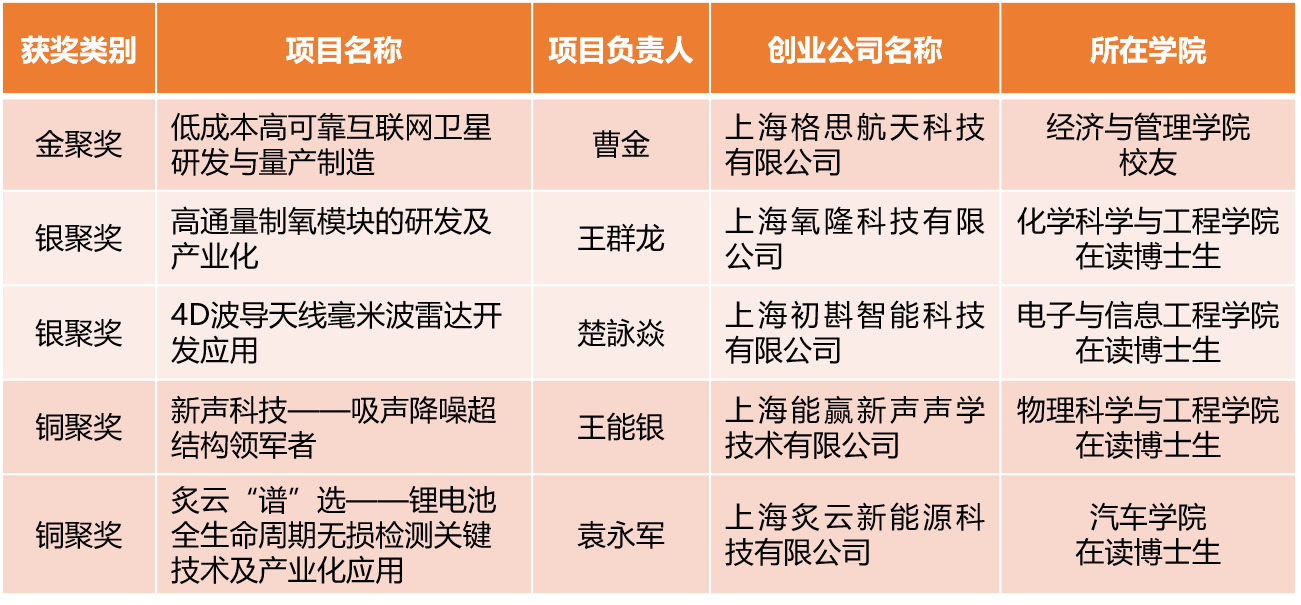 同济人获第五届“海聚英才”全球创新创业大赛1金2银2铜