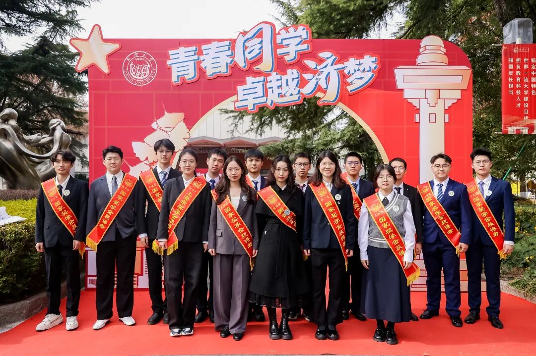 踔厉奋发,追求卓越。典礼上,3组5位优秀大学生代表作为主讲人,讲述了他们的逐梦之路,传递澎湃的青春能量,展现新时代同济青年的精神风貌。口腔医学院本科生贾双萌,医学院本科生陆吴燕、方可讲述了他们服务人民生命健康的医学初心与科研实践。海洋与地球科学学院硕士研究生罗力权分享了他在磨砺中重新校准人生坐标的成长轨迹。电子与信息工程学院博士研究生刘娟讲述了她如何将论文“最优解”转化为服务现实的“最优行动”。