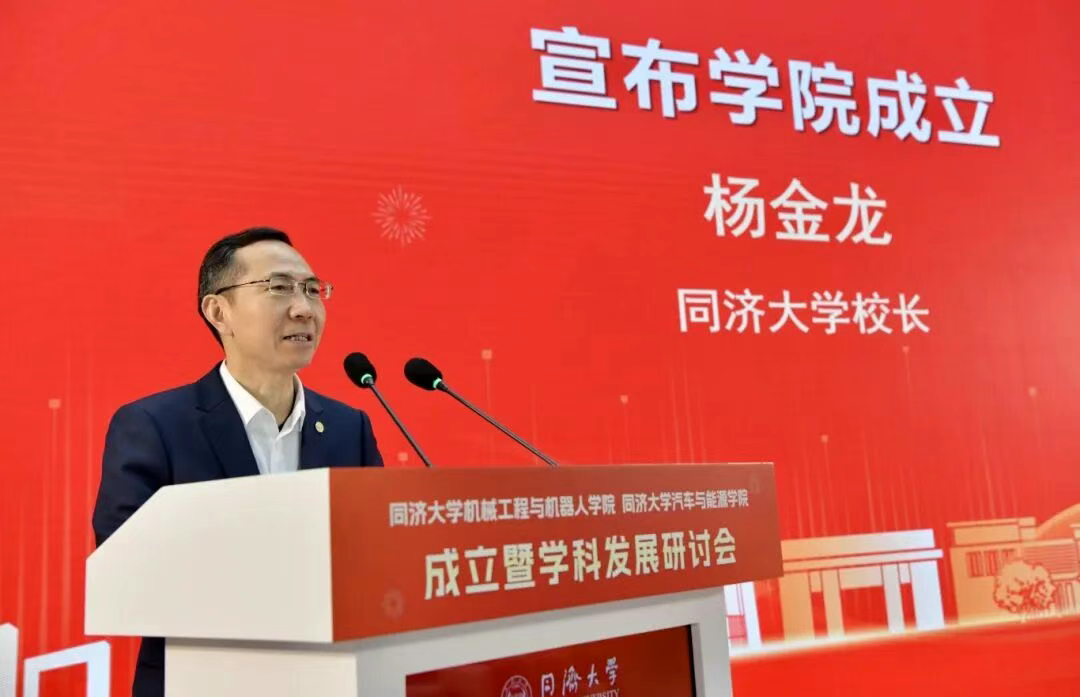 杨金龙宣布同济大学机械工程与机器人学院、同济大学汽车与能源学院成立,希望学院全体师生统一思想,提高站位,以学院学科重组为契机,凝心聚力,接续奋进“十五五”,一体推进教育科技人才发展,奋力续写学科发展与人才培养新篇章,为建设教育强国、推进中国式现代化作出更大贡献。