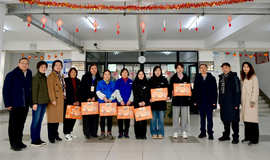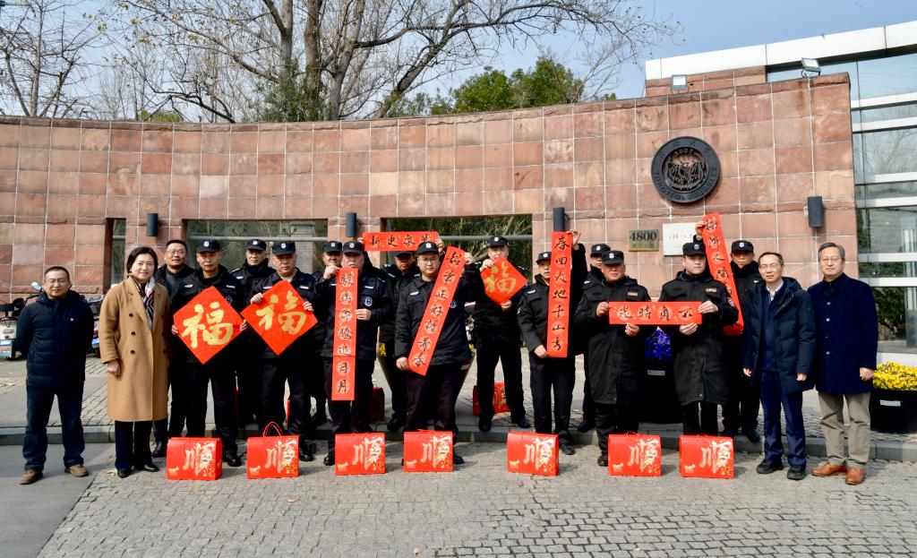 郑庆华来到四平路校区正门门岗、学苑饮食广场、学生社区西南二楼(启迪书院)和校医院等处,杨金龙来到嘉定校区正门门岗、秋谷苑食堂、学生社区友园9-10号楼等处,分别向在岗的保卫人员、厨师、学生宿舍管理人员、医务人员等表示亲切慰问,向他们送上新春礼包和喜庆春联,感谢他们舍小家为大家,在岗履职尽责、默默奉献,希望他们继续保持饱满的工作热情和扎实的工作作风,恪尽职守,用心用情做好寒假春节期间学校各项服务保障工作,全力守护校园平安,让师生度过一个欢乐、祥和的春节,并祝愿他们在新的一年里跃马扬鞭、身体健康、阖家幸福!