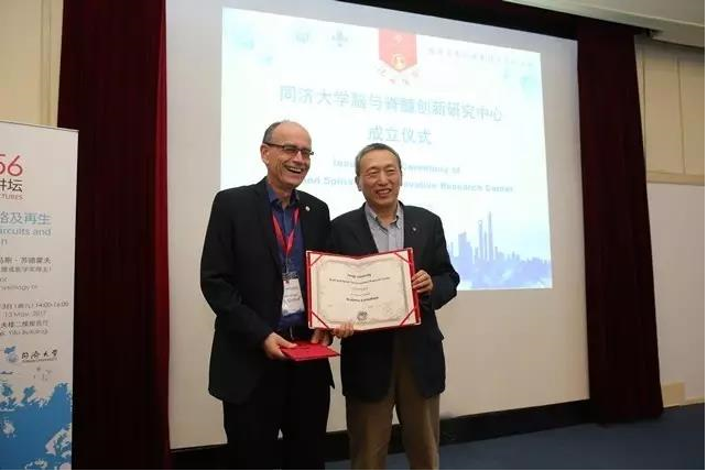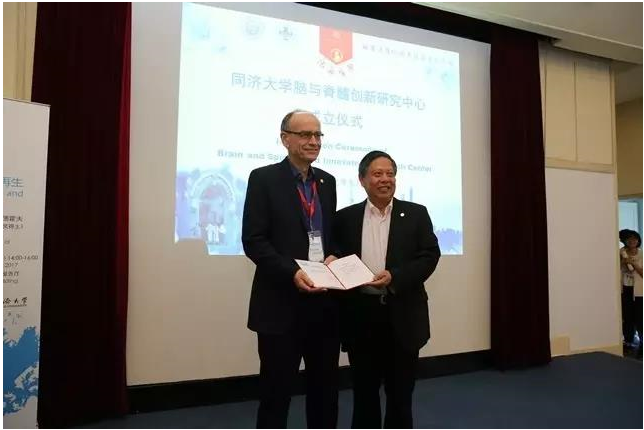 会上,Thomas C. Südhof教授受聘为同济大学荣誉教授,同济大学脑与脊髓创新研究中心的特聘顾问证书。同济大学脑与脊髓创新研究中心正式揭牌。
