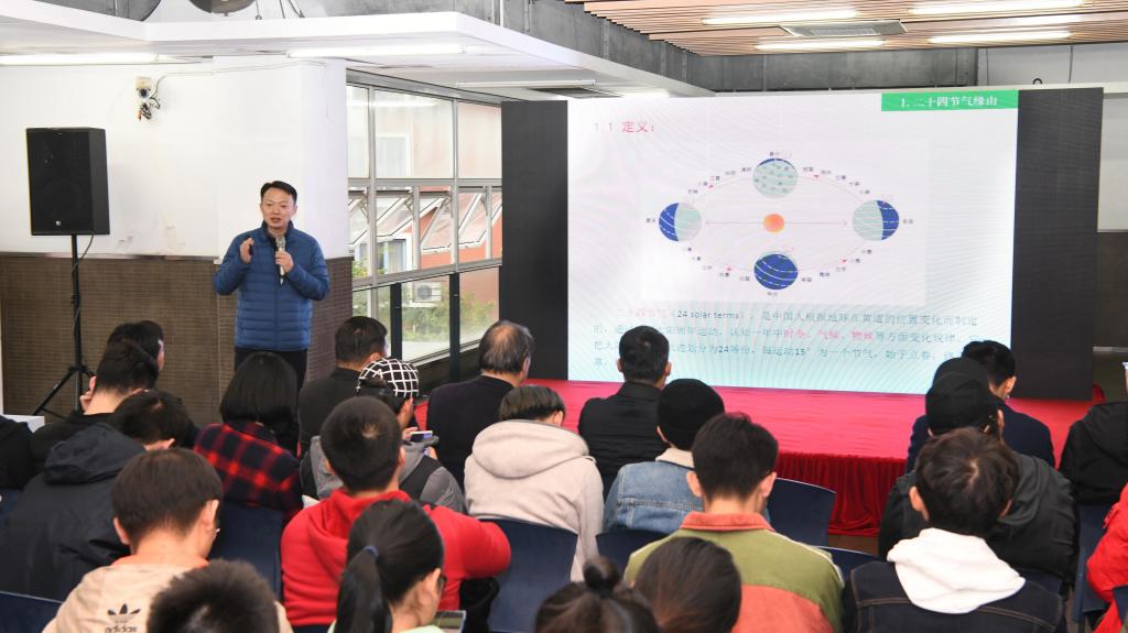 人文学院副教授黄松带来了题为《二十四节气与中国文化》的讲座,现场100名通过网上报名的学生,及特邀的10名来自香港和台湾地区的交流生饶有兴趣地聆听。黄松从二十四节气的缘由讲起,讲到二十四节气物候的节律,还对中外节气进行对比,最后还讲到二十四节气的饮食与天地的联系。他表示,二十四节气是中华民族悠久历史文化的重要组成部分,凝聚着中华文明的历史文化精华。2016年11月30日,我国申报的“二十四节气”被列入联合国教科文组织人类非物质文化遗产代表作名录。