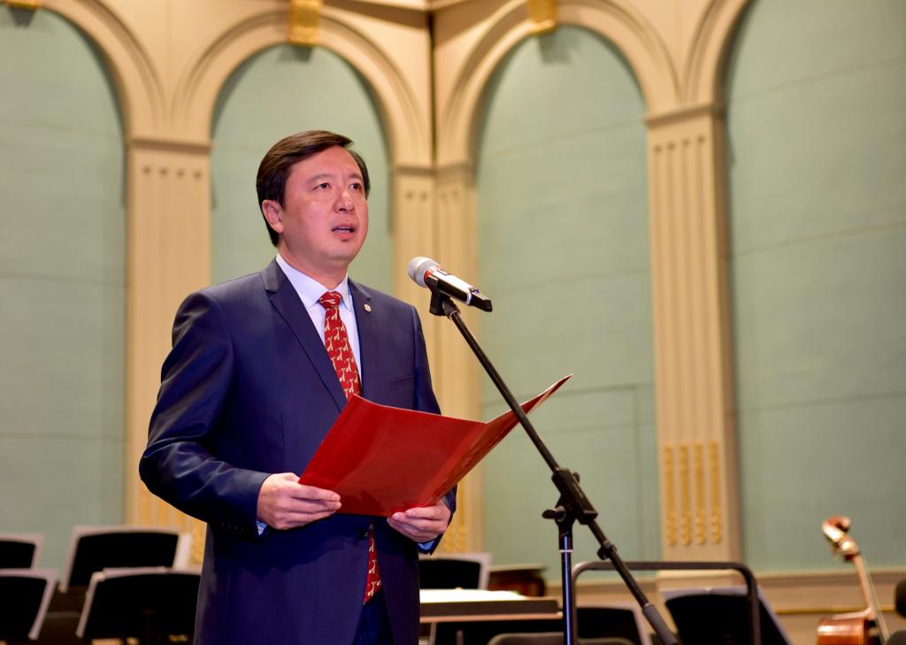 党委书记方守恩在致辞中表示,校友会举办新年音乐会,是一次创新。它包含了我们美好的愿望,以此感谢校友和社会各界对学校的支持,成为同济校友、师生庆贺新年的专属方式和文化品牌;也是一次善举,同济大学长期支持云龙县的定点扶贫,此次倡议发起“云龙发展基金”,与“上海机场德高动量慈善之夜——2019同济大学新年音乐会”相结合,将所有音乐会入场券所募集的款项作为该基金的启动资金,用于支持云南省大理州云龙县的教育、医疗、产业发展和基础设施建设等各项事业。自2018年12月10日捐赠开始,短短十天共获捐赠资金超过50万元。为了号召校友、师生继续奉献爱心,已开设“云龙发展基金”线上捐赠平台,继续接受社会各界友好人士的长期捐赠。
