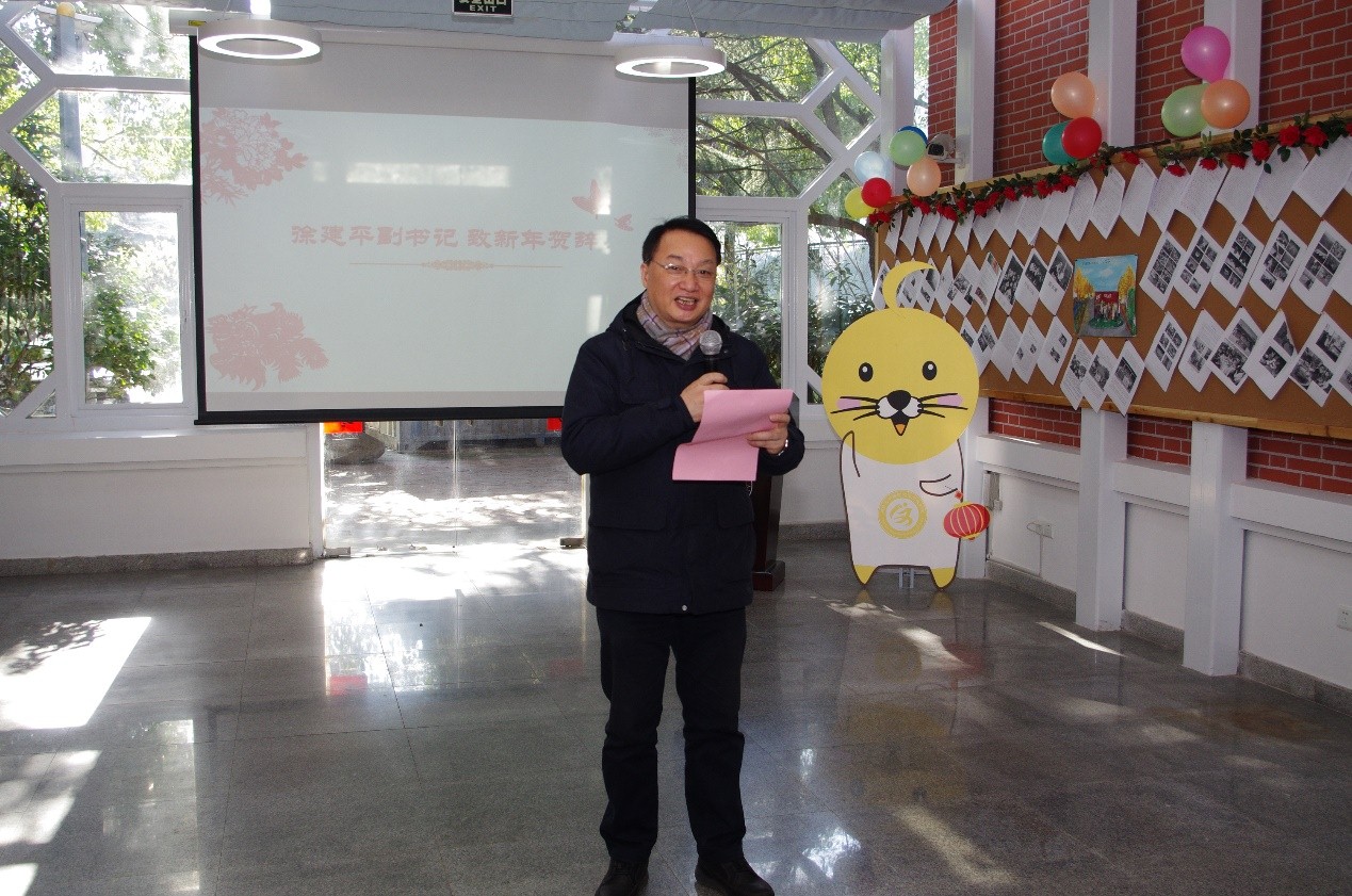在新年团拜环节,徐建平代表学校,向全体来宾、国际文化交流学院全体师生员工致以节日的问候和新年祝福。徐建平指出,当今的世界越来越扁平化,不同文化背景的人与人之间的沟通交往越来越频繁,在国际学生服务和管理上,同济一直提倡中外学生融合,致力于将高等教育建立在多元文化融合的基础上,致力于培养具有全球视野、善于跨文化交流合作的中外学生。同济一直在探索着国际化校园建设,同济有实力搭建好这样的文化融合平台。