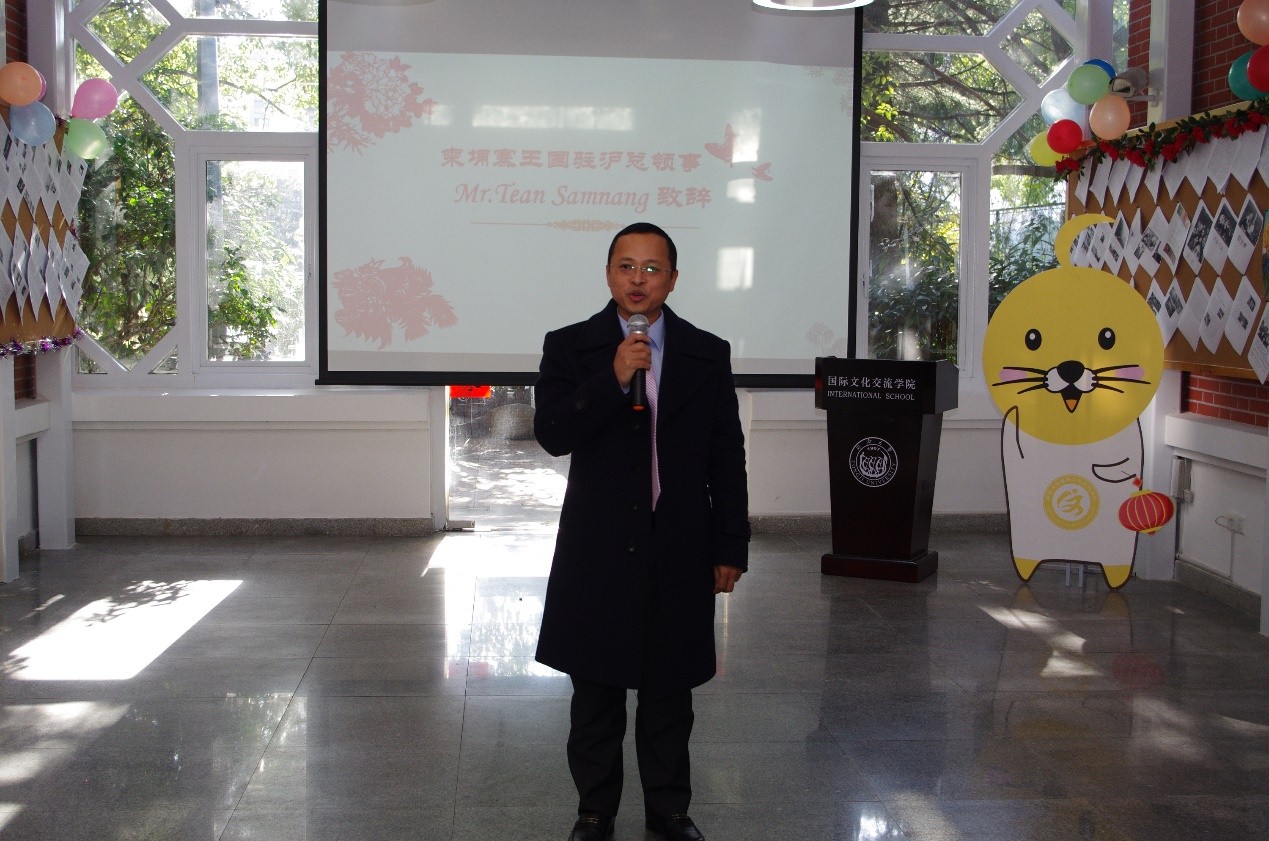 12月28日下午,国际文化交流学院“We are 伐木嘞(Family)”中外学生迎2019新年游园会举办。本次活动特别邀请到了柬埔寨王国驻沪总领事TEAN Samnang先生及其夫人出席游园会启动仪式及新年团拜会。同济大学党委副书记徐建平出席活动并致新年贺辞,校学生处、校留学生办公室、校团委、校医院负责人以及宣传部、保卫处、后勤集团和相关职能部门老师们也来到活动现场,与学院师生一起联欢。来自100多个国家和地区的600余名中外学生积极参与其中。