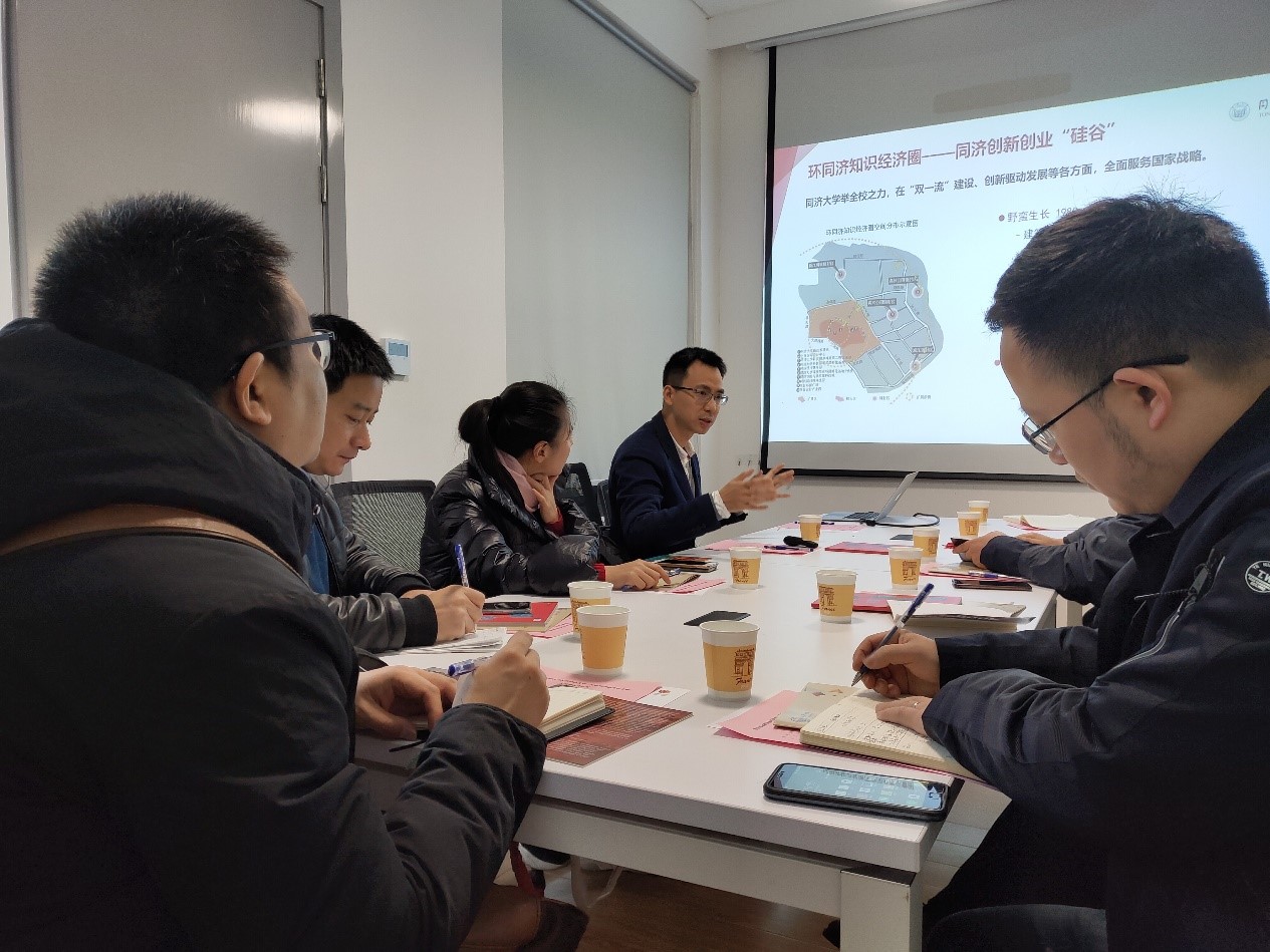 校团委负责人以创业谷为案例,对同济大学创新创业教育工作、同济大学创新创业基础设施建设等内容进行了专题介绍。考察团对同济大学创新创业教育及创业谷的运营工作给予了肯定。陈德川指出,同济大学的双创教育与政府、企业、社会等资源形成了良好的循环。同济大学针对校友的创业政策、扶持和服务,值得借鉴。陈德川希望重庆市北碚区政府能与同济创业谷建立长足合作,日后在创新创业领域进行更多的交流。