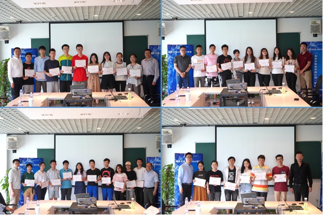 2018-2019学年“未来企业家养成计划”终期汇报活动于5月31日在瑞安楼举行。本次活动由同济大学创新创业学院和学生事务中心联合主办。校创新创业学院、学研工部、外联办、创业指导站,智勇青少年创新教育研究院,上海净梧新材料有限公司,上海同济天地创意设计有限公司等单位代表出席本次活动。