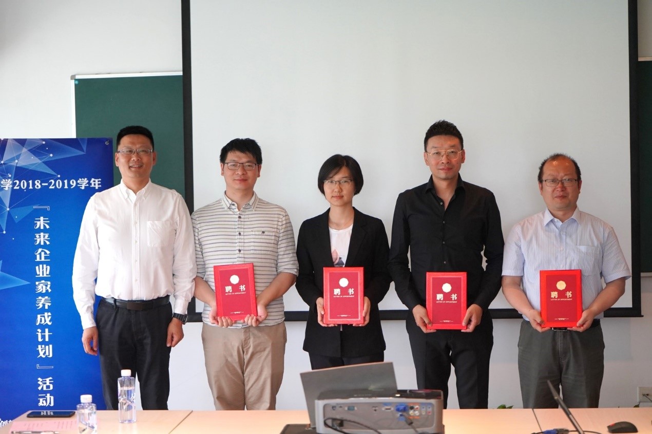 创新创业学院专职副院长周斌为四组创业导师颁发聘书