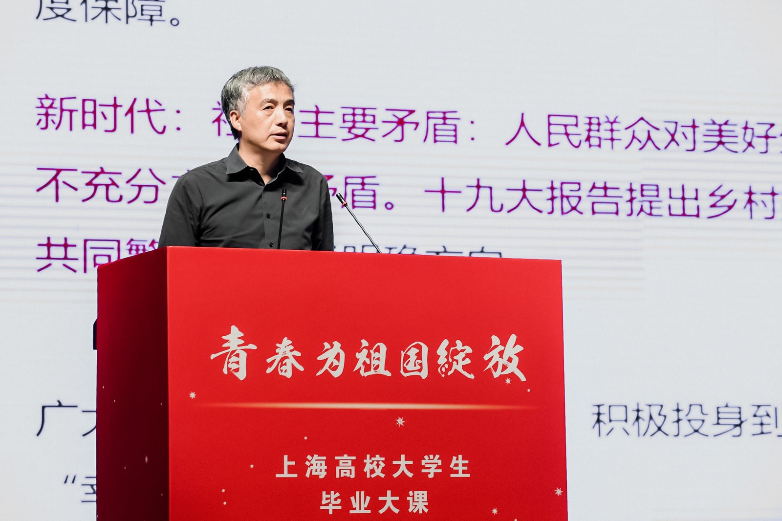 六月的校园繁花似锦,又一批学子即将扬帆远航。6月4日下午,上海市60多所高校2000余名大学毕业生代表齐聚我校大礼堂,共同聆听一场别开生面的“毕业大课”。站上大课讲台的,有政府部门领导、崇明东滩鸟类国家生态自然保护区20年守护者汤臣栋;有教书育人楷模、乡村振兴战略黄岩模式开拓者和实践者杨贵庆;有行业精英,走在互联网尖端、科技创新成就创业梦想的我校校友季昕华。本次活动由上海市教卫工作党委、市教委主办,我校承办。上海市教卫工作党委书记虞丽娟、我校党委书记方守恩、党委副书记徐建平,上海市教卫工作党委、市教委分管领导闵辉等出席活动。虞丽娟、方守恩分别讲话,闵辉主持大课。
