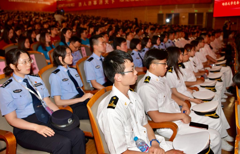 授课老师分别从人生阅历、专业素养、社会发展各个领域用切身感受指引大学生在实现中华民族伟大复兴的接力跑中担当奋进者、开拓者和奉献者。随后,我校土木工程学院毕业生董国威、海洋与地球科学院的毕业生王薇、外国语学院毕业生李思妍、轨道与交通研究院毕业生王卉捷等四位毕业生代表上台发言。他们纷纷表示,听了今天的这堂课深受感动,倍感鼓舞,毕业后将充分发挥自身专业特长,到祖国最需要的地方去,在平凡的岗位上建功立业,绽放出最灿烂的青春。整堂“毕业大课”,台下的学生们听得全神贯注,热烈的掌声此起彼伏。