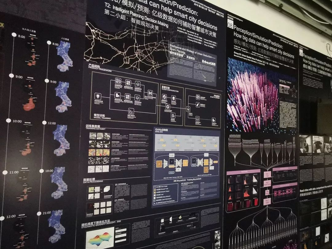 在7天紧张的工作后,第八组的三个小组交出了自己的答卷。第一组使用树莓派测量上海地铁站人群及环境产生的行为大数据,并进行了实时数据分析和可视化;第二组使用AI技术对输入的规划数据进行GAN算法分析,生成规划方案;第三组使用房价相关的城市数据设置了一款智慧城市app原形。各组学生都在这几天经历了测试数据、清洗数据、挖掘数据、训练模型以及页面的前后端界面交互。脉策数据开发的Datamap数据系统平台在这个过程中成为了本组成果的分析、展示的核心技术。