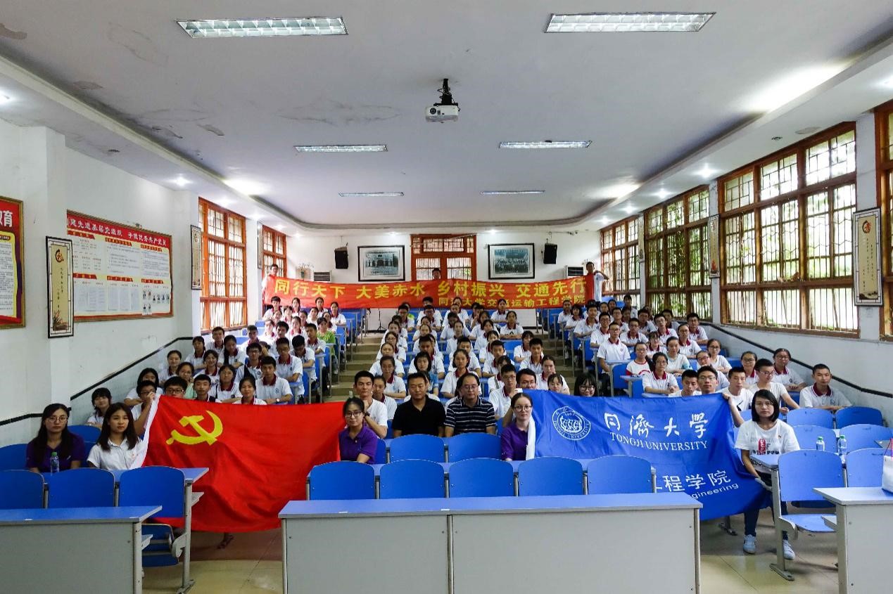 2019年7月4日至15日,同济大学交通运输工程学院暑期社会实践团队于贵州省赤水市开展了为期12天的实践活动。在交通运输工程学院教授丛林老师、辅导员王同宇和陆昱蓉老师的带领下,2名博士生、5名硕士生以及3名本科生组成的实践团队圆满完成了包括定向支教、交通调研、红色教育在内的全部活动,用爱心助力苗苗成长,用专业对接国家战略,用脚步丈量育人深度。