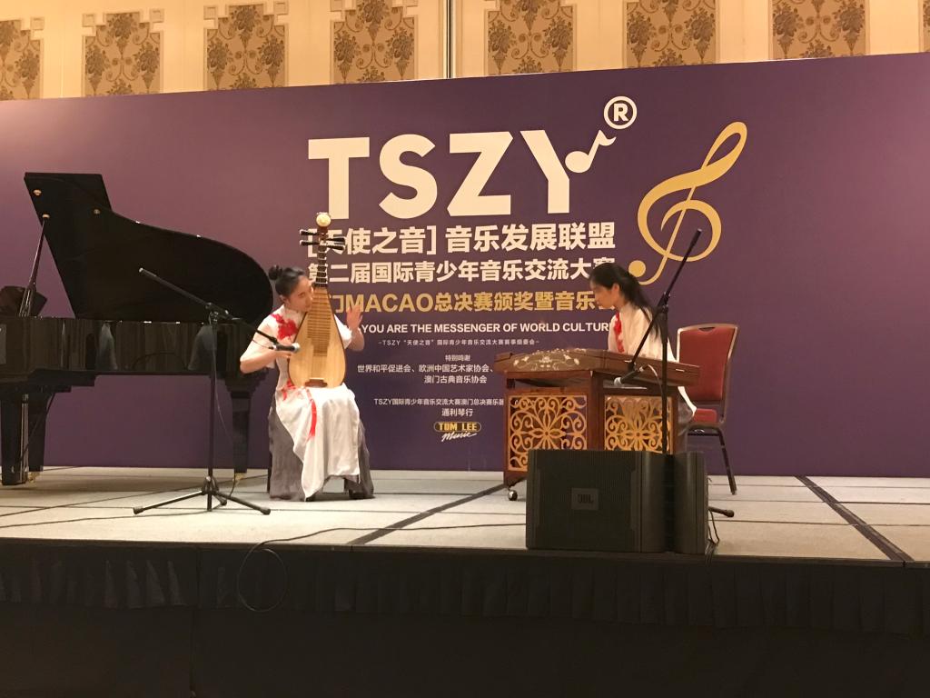 7月13日,第二届“TSZY天使之音——国际青少年音乐交流大赛”落下帷幕。由我校艺术中心推选的学生民乐团学生俞悦和金朵颐以一曲原创扬琴和琵琶二重奏作品《西风所见》在比赛中获得大学组重奏组合类金奖,同时受组委会直荐亮相7月14日的颁奖音乐会。这是我校学生民乐团成员首次在国际大赛上奏响的“同济之声”。