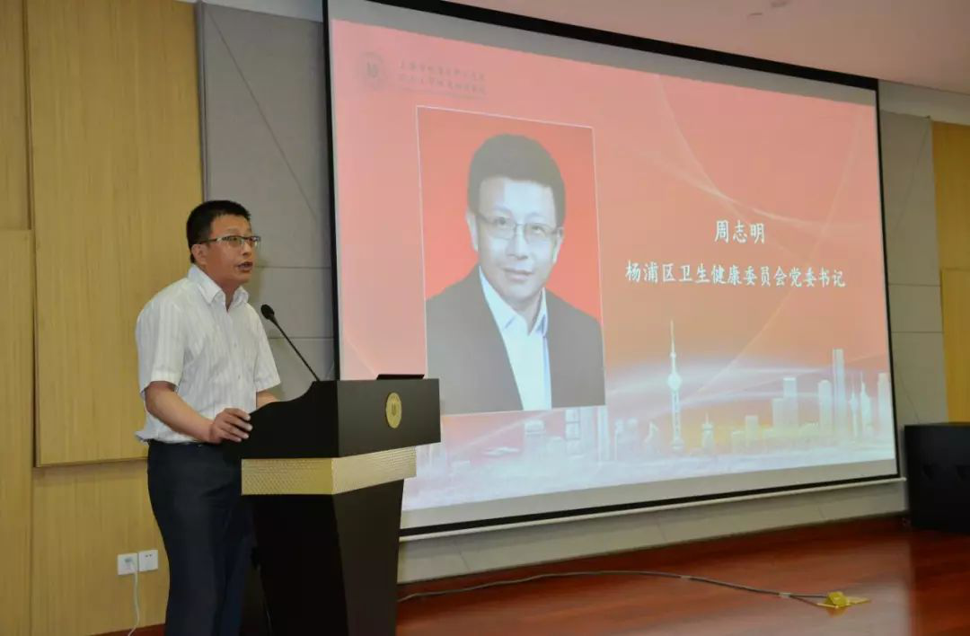 周志明致辞,希望教学实训中心的建成启用,进一步加快完善全科医生的培养体系,为杨浦区域内,乃至整个上海市全科医师规范化培训、医学生和进修生临床后期实践搭建学习、交流的平台。