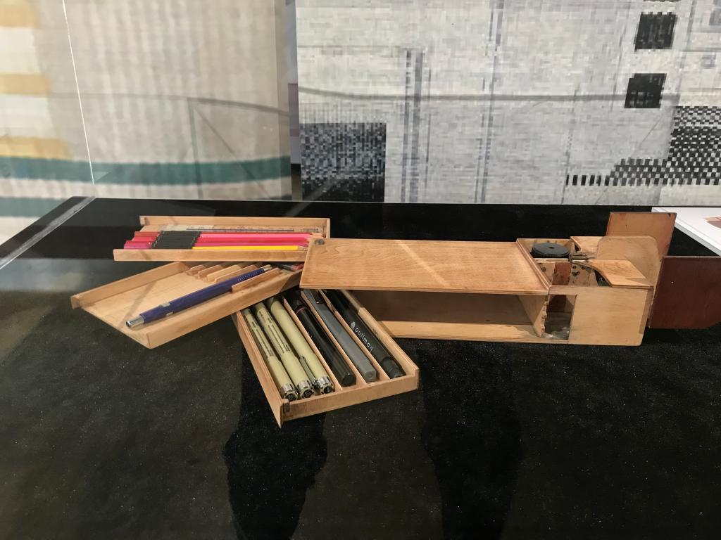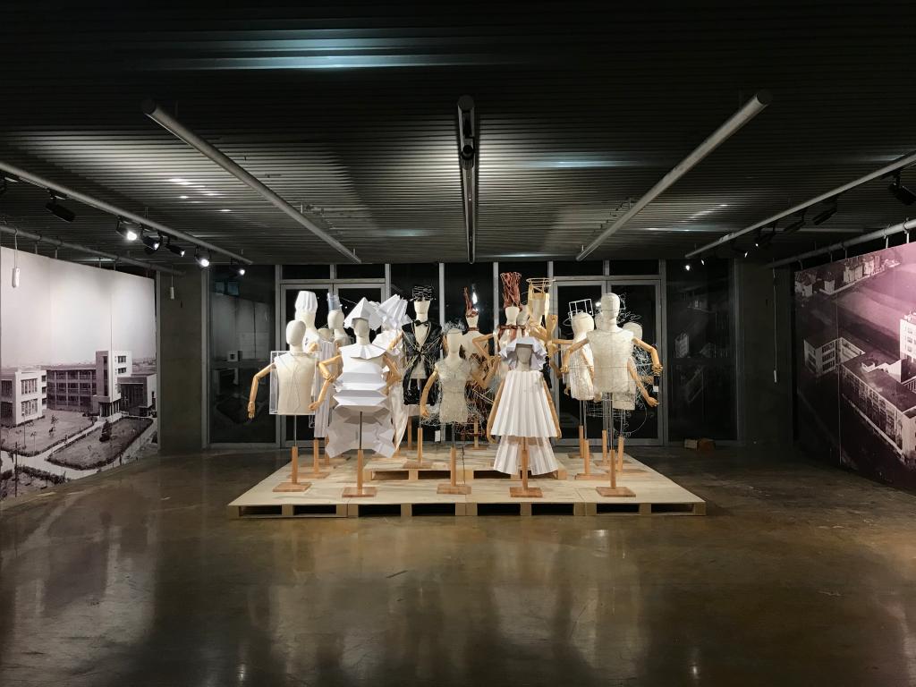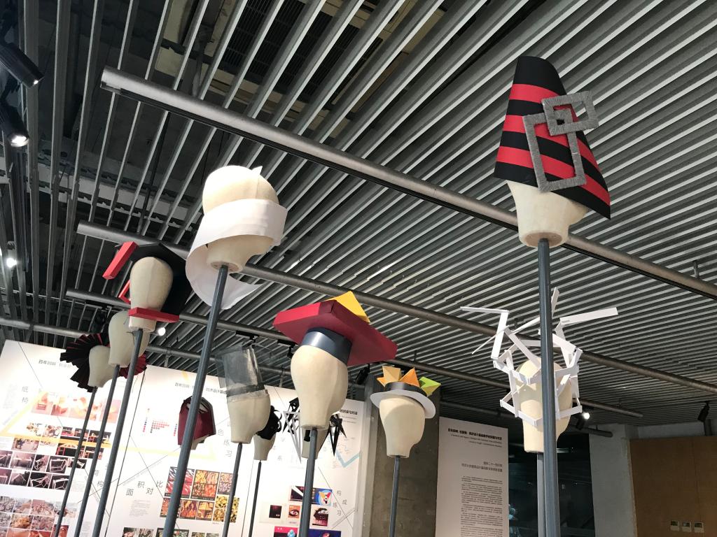 这次展览内容非常丰富,包括对历史上的包豪斯学校基础教学教师的思想和教学方法的梳理,同济大学建筑设计基础教学体系在各个历史时期的发展脉络以及上学期末建筑与规划本科一年级同学的向前辈、大师致敬的基础课实践作品作业,充分展现了包豪斯理念在各个时期对同济建筑教学的浸润,也反映了同济多元并存的教学传统。展品中可以看到王伯伟在1979年学生时代所做的设计基础课作业“台式文具盒”的实物展出,也可以找到1979年伍江在做学生时所完成的书籍封面设计,既有真切的历史感,也增添了开幕式的活跃气氛。展厅中最为丰富和多样的,是2018本科一年级同学的向前辈、大师致敬并呈现自己的观察、探索和想象力的设计作业成果:有“触摸里弄的烟火气”的系列构成作业,有向前辈舞台设计致敬的“身体与包裹”的系列设计,还有具有抽象构成特点的纸质帽子设计、以及包豪斯100周年海报设计等作品。