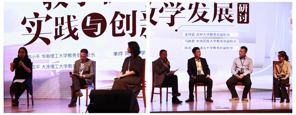 此外,来自E9联盟及多所兄弟高校的教务处负责人——华南理工大学教务处副处长陈小平、大连理工大学教务处副处长段玉平、我校本科生院副院长单烨、华东理工大学教务处副处长刘金库、吉林大学教务处副处长金祥雷、北京语言大学教务处副处长陈亮、中央民族大学教务处副处长马映君等多位嘉宾,就教学机制体制改革、教师教学发展、柔性援疆、新工科等主题进行了精彩分享与研讨。