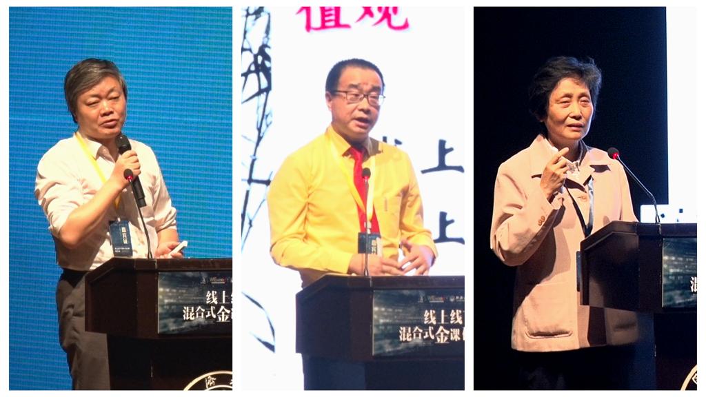 会上,东南大学孟桥教授、重庆大学叶泽川教授以及我校王祖源教授等几位国家精品在线开放课程入选名师分别从专业金课群建设、线上线下混合式教学设计、从MOOC到SPOC重构课程教学几个主题入手,分享了自己多年来对教学的有益思考与宝贵经验。