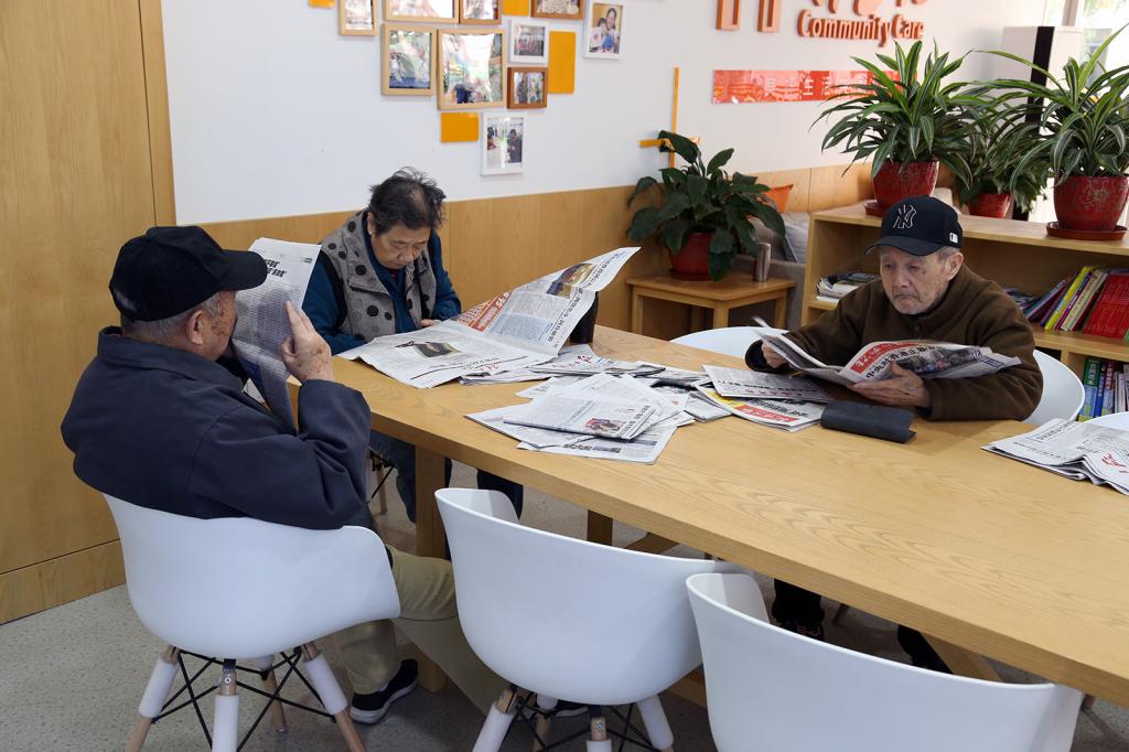 邻里汇读报的老人
