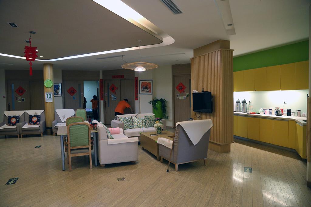 一路走下来,我忘记了这里是养老院,有的只是家里的温馨、幼儿园的萌哒哒。“忘掉年龄是适老化设计的基本功。”司马笑着说,“我们所有材料、空间安排都采取居家、无障碍设计。地板踩上去没有‘吱吱’声,色彩也不是白的、冷的色调,而是温馨、清新的居家感。”