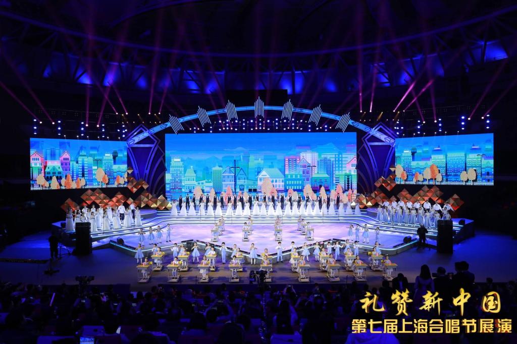 11月24日晚,“礼赞新中国”第七届上海合唱节展演在上海旗忠森林体育城网球中心举办。此次展演以“礼赞新中国”为主题,是2019年上海市民文化节的闭幕活动,整场演出在国家文化云进行了线上直播。我校学生合唱团作为“百支优秀市民合唱团”受邀参加展演。我校学生合唱团与小荧星艺术团、嘉定工业区企民星艺术团及华师大合唱团共同演绎了无伴奏合唱《我的未来不是梦》。歌曲以阿卡贝拉形式演绎,同学们通过人声、身体打击并借助纸杯道具等演绎了《我的未来不是梦》,展示了当代大学生的朝气与活力。同学们认真出色的表现得到了导演组的肯定和赞赏。