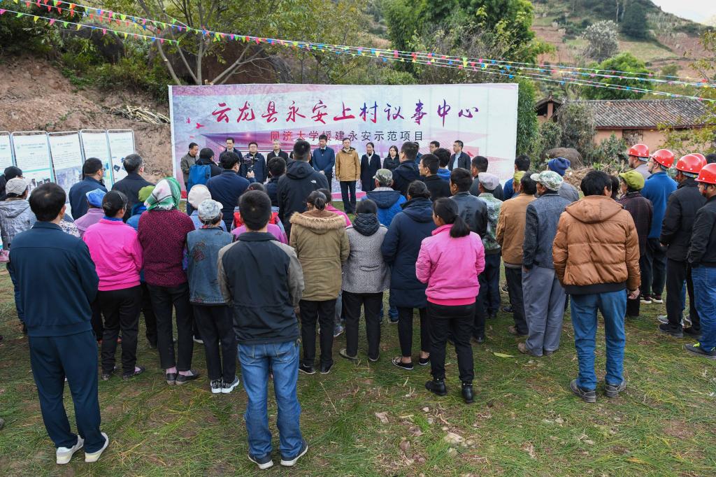 在永安村上村,调研团参加了上村议事中心的开工仪式。该中心由我校建筑与城市规划学院袁烽团队设计,同济大学建筑设计研究院(集团)有限公司、上海同济城市规划设计研究院共同资助建设,是乡村加强基层治理能力和组织建设的重要基础设施,包括公共议事、公共活动、公厕等功能,预计2020年2月完工。