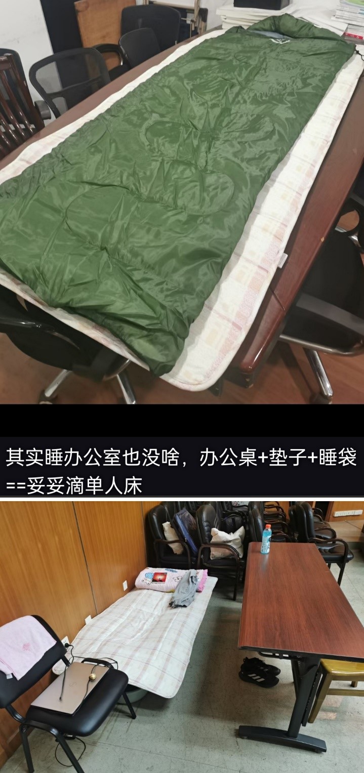 土木工程学院建筑工程系罗烈老师是本轮疫情来留校时间最长的老师之一。3月12日接到专业教师可第一批离校的通知时,罗老师依然选择留在校园内,“一周中四天有课,这样上课方便一些”。他在朋友圈里写道:“其实睡办公室也没啥,办公桌+垫子+睡袋=妥妥滴单人床。”幽默的话语,表现出面对困难的从容和豁达。3月14日上午的第一、二节在线上课被土木大楼需进行消杀的紧急安排中断,他在离线前还不忘安抚在线学生的情绪,并按照学院工作要求,平稳实现过度,完成上课任务。