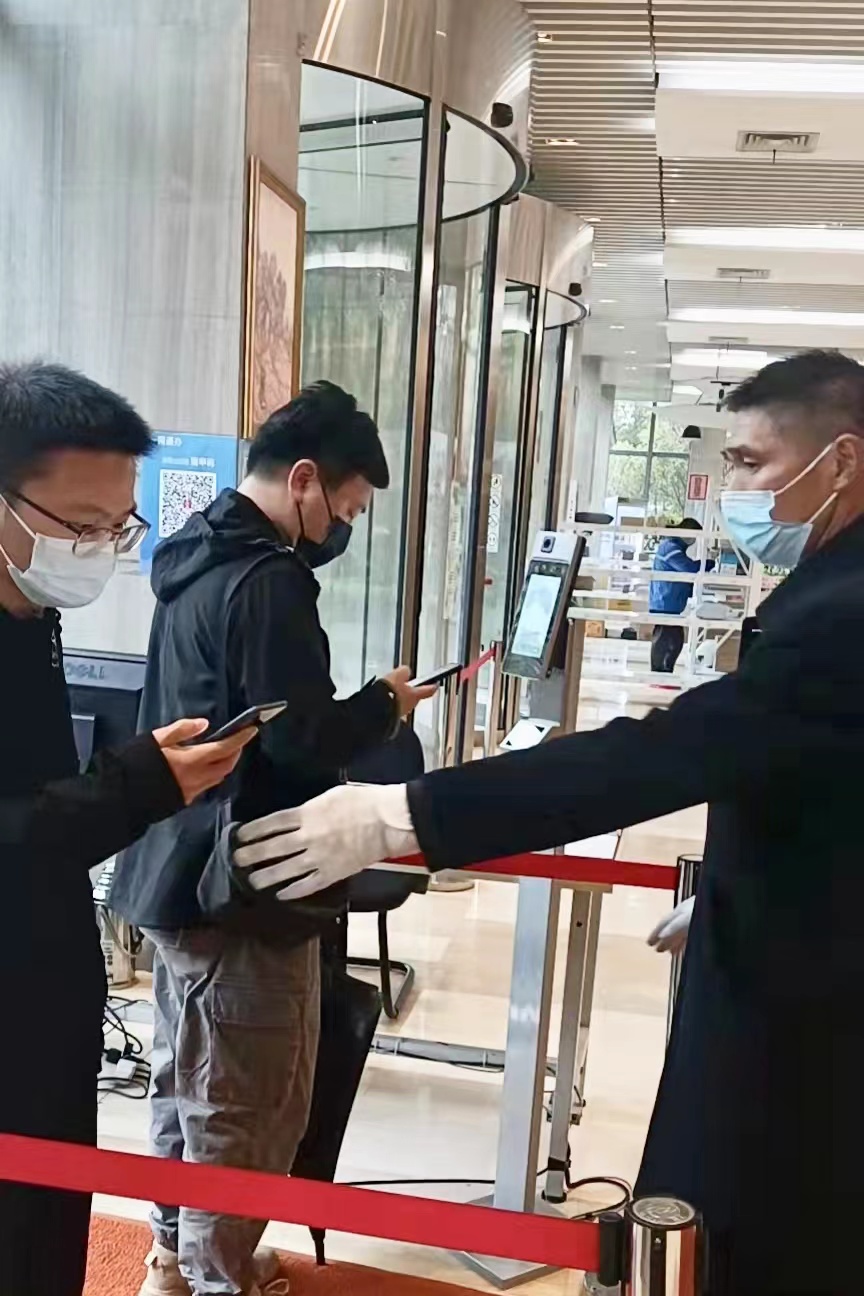 杨浦分园园区总经理钱学标为解决“守门”难题,探索运用智能设备“人脸门禁测温一体机”以快速有效地收集、研判、核查各类突发状况,建立“信息化”的防疫大网。进入园区的员工只要站在测温仪前打开健康码往读卡器前一扫,0.3秒内员工的健康信息数据(包含健康码、通行码、疫苗接种、核酸检测、体温)便可清晰地显示出来,从而实现了高效的防疫管理。