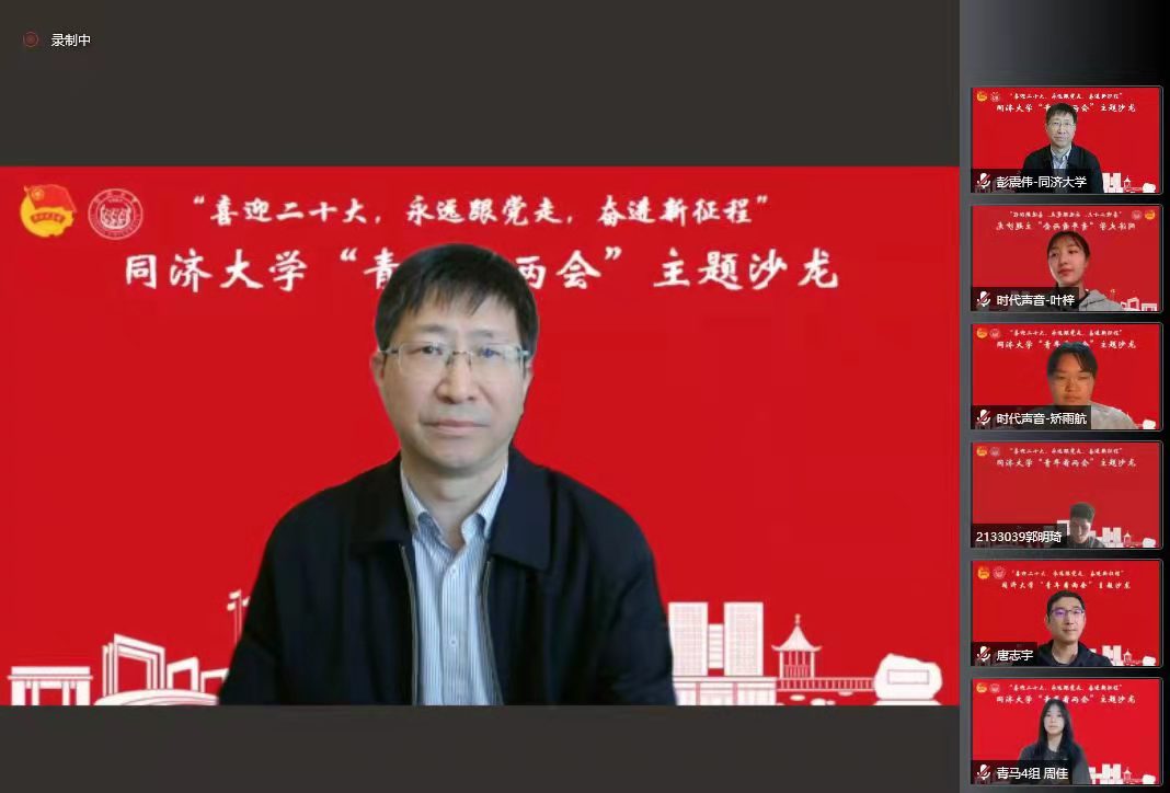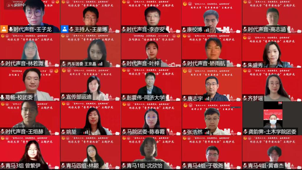 为进一步引导广大团员青年深入学习贯彻习近平新时代中国特色社会主义思想,将专业学习与两会精神学习紧密结合,切实带领全校团员青年凝心聚力,当好党的助手和后备军,以实际行动迎接党的二十大胜利召开,3月30日中午,共青团同济大学委员会、时代声音传播社联合开展了“喜迎二十大、永远跟党走、奋进新征程”主题团日暨2022年度同济大学“青年看两会”主题沙龙。活动通过视频连线的方式进行,腾讯会议和哔哩哔哩平台进行了同步直播。