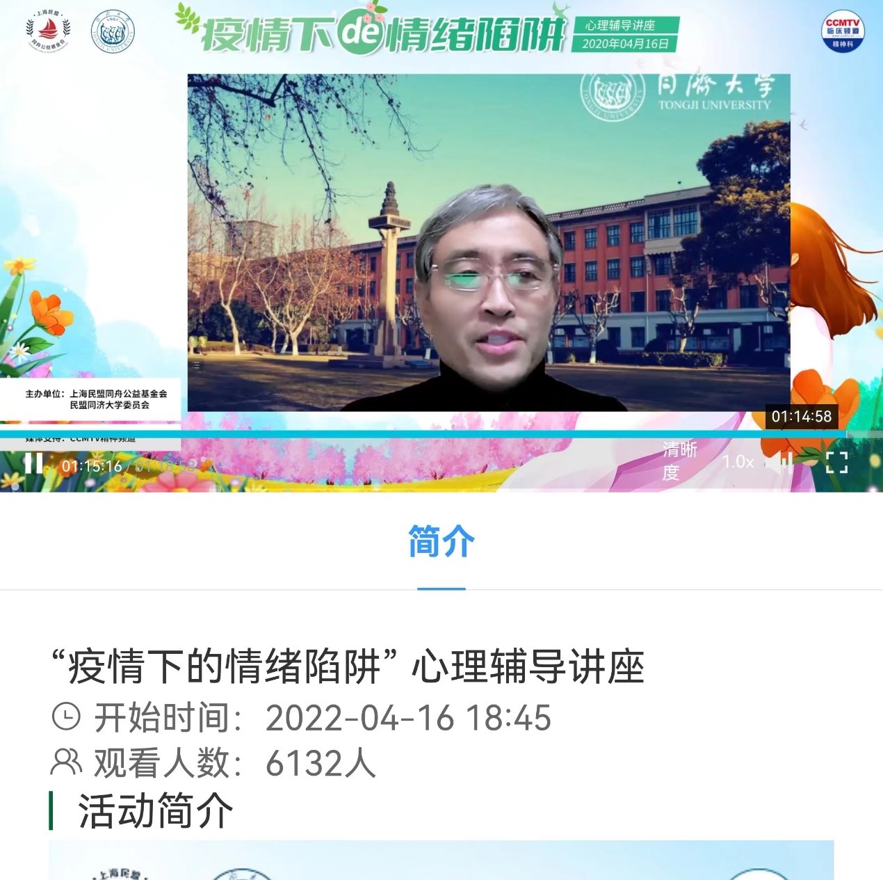 民盟同济大学委员会举办“疫情下的情绪陷阱”线上讲座