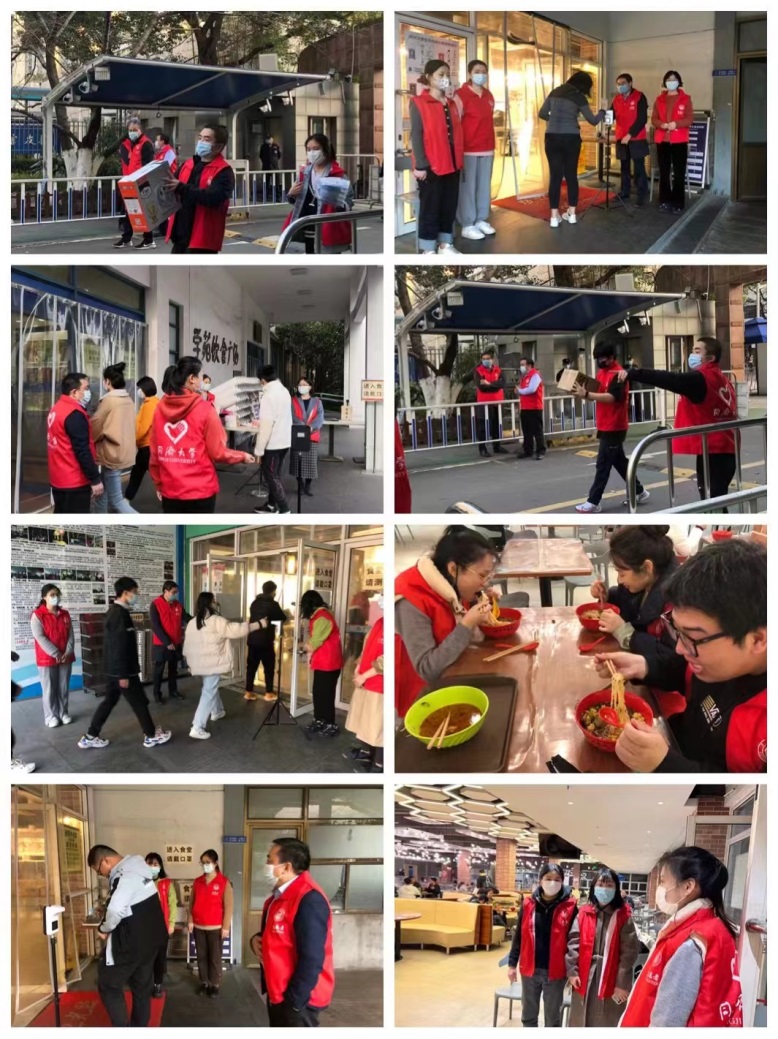 此后的一段时间里,财务处这支志愿者队伍频繁出现在校内各个食堂、赤峰路50号校门口、樱花大道及四平路校区的各个防范空间里,在维持校内秩序和平安、疏导学生方面,以小我之力,汇聚起强大的战“疫”合力。