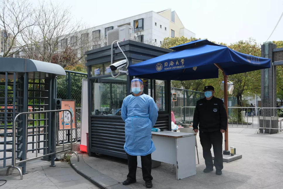 面对校园封闭和准封闭几个阶段的转换,面对校园面上的加大管控力度,面对紧急情况的处置,保卫处坚决落实学校指示精神,做好各校门的管理和校园围墙的巡视工作。赤峰路18号门卫班组,在执勤力量减员的情况下,依然保证24小时在岗对接,协助做好保障物资的接收、搬运和消杀。