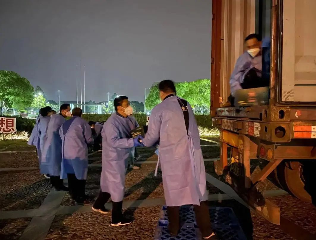 为了尽快做好校友捐赠物资的流转和调配,嘉定保卫办全体同志在副处长陈永强带领下,恪尽职守,冲锋在前,担负起嘉定校区进校物资搬运任务,有时候是深夜卸车,一直干到天亮。